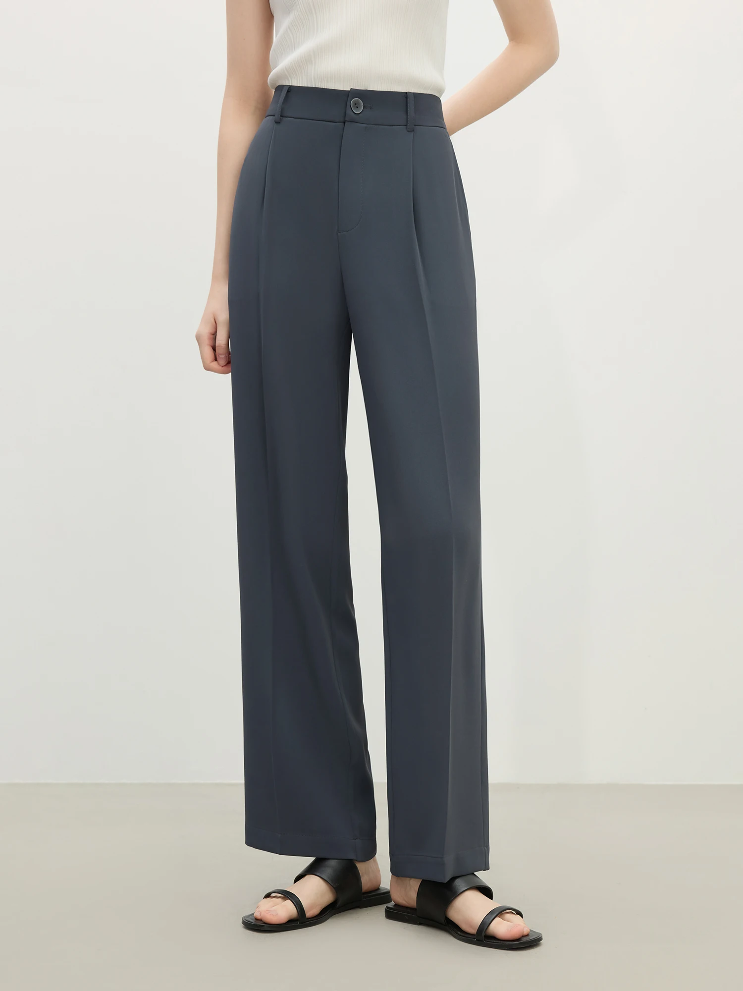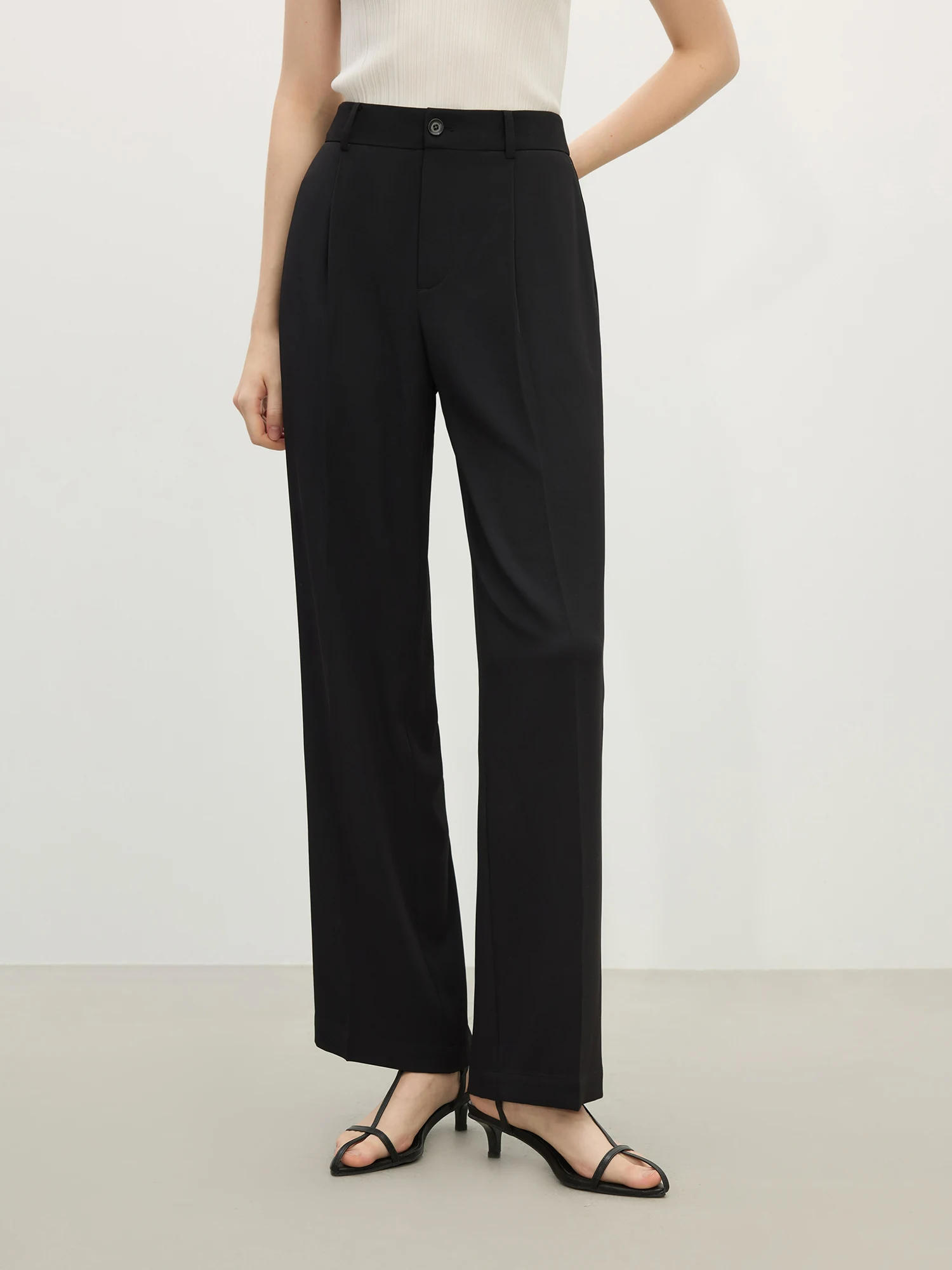 Women’s Black Commuter Trousers – High Waist Draped Straight