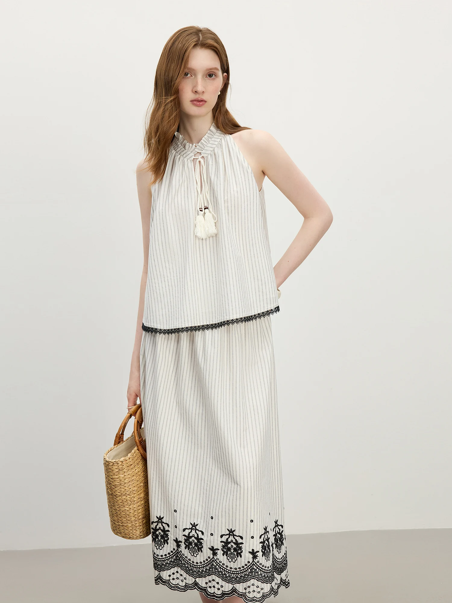 Mercerized Cotton Halterneck Top & A-Line Skirt Set
