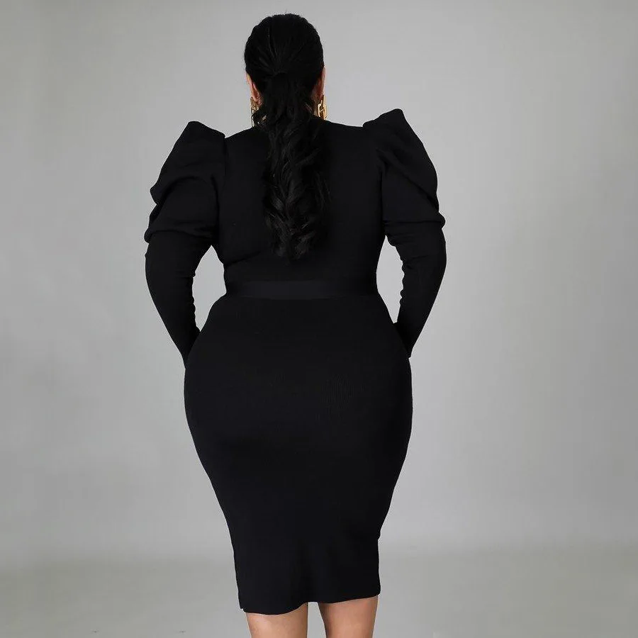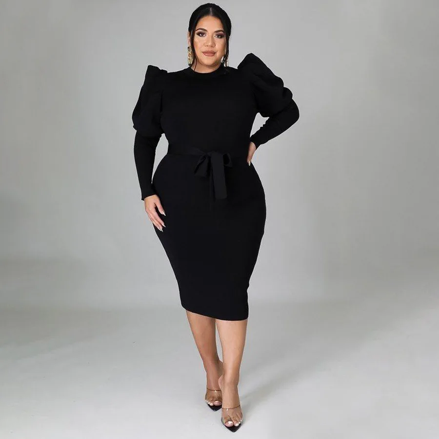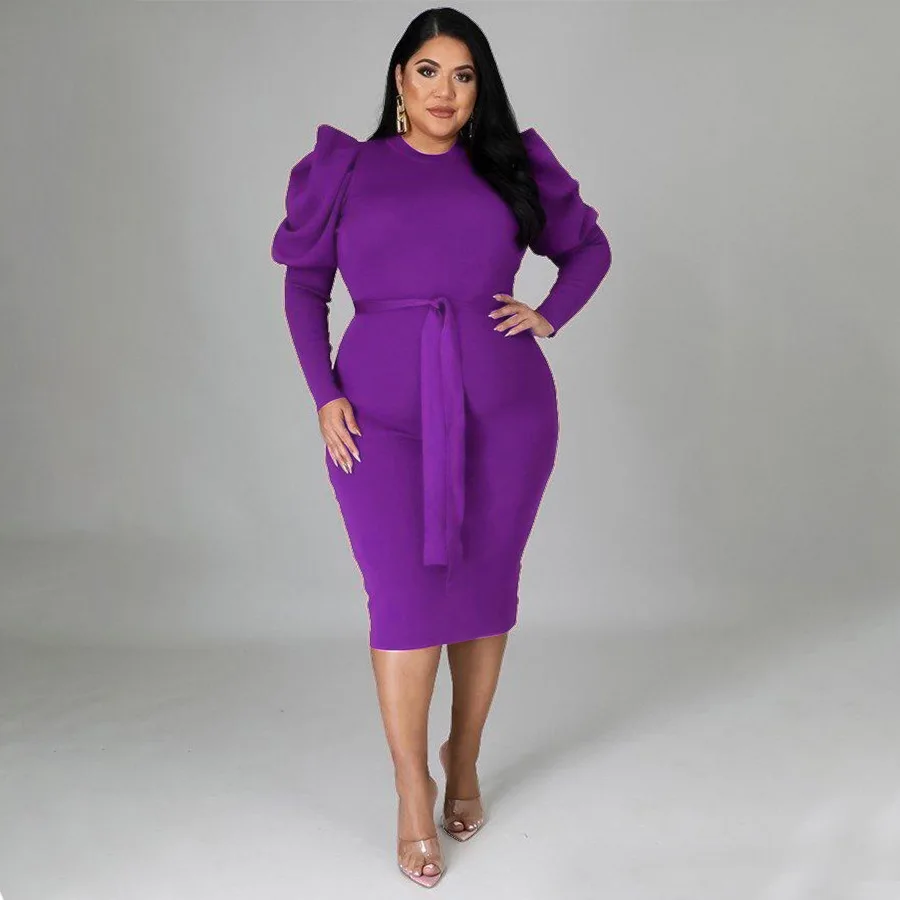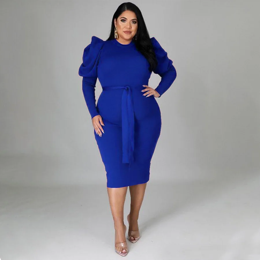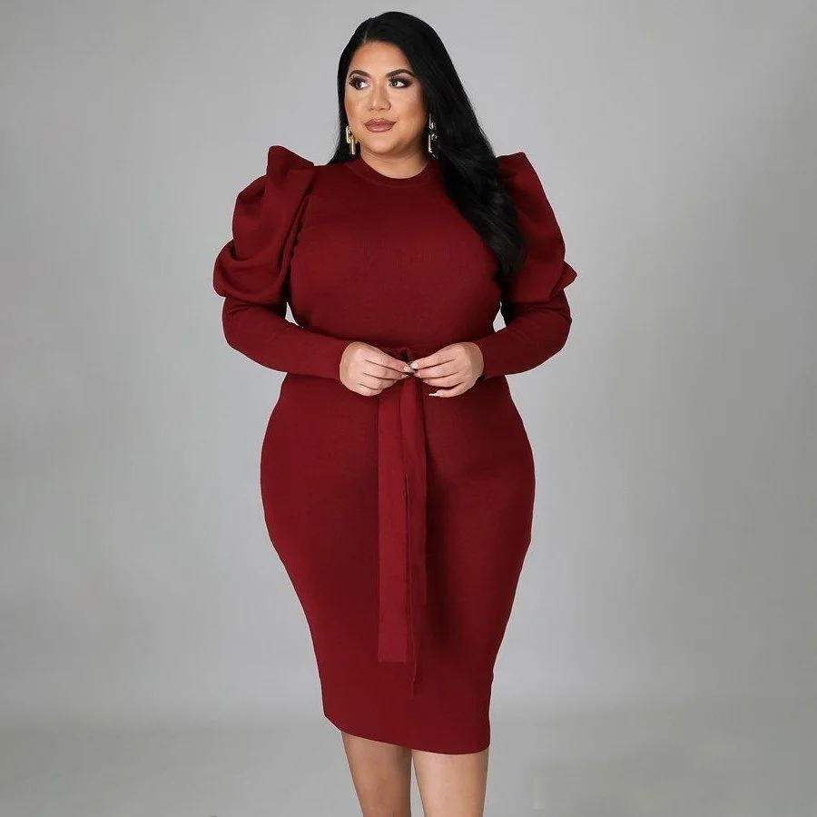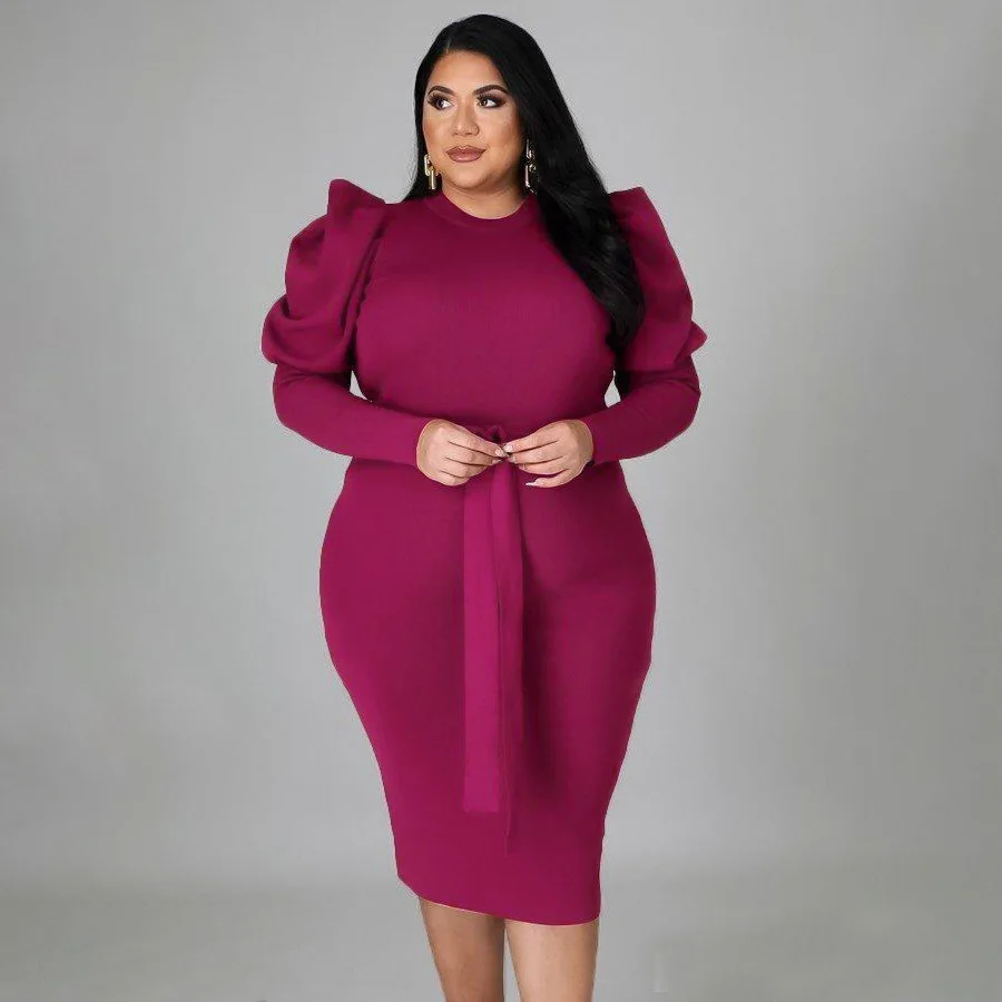 Chic Plus Size Women’s Long Sleeve Belted Summer Dress