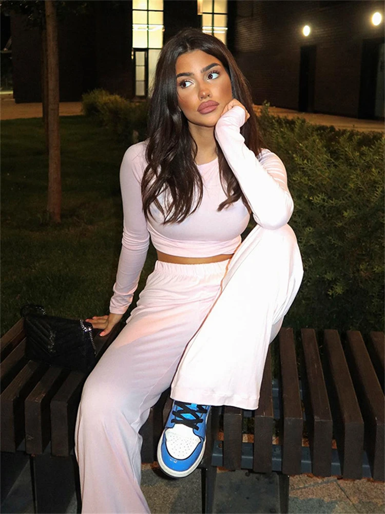 Experience the perfect blend of comfort and style with our luxurious Basic Wide Leg Pants Leisure Suit. This chic two-piece set is designed for every body, offering a flattering silhouette that effortlessly transitions from casual outings to cozy evenings at home. The soft pink hue radiates a sense of warmth, making it a staple in your autumn wardrobe.