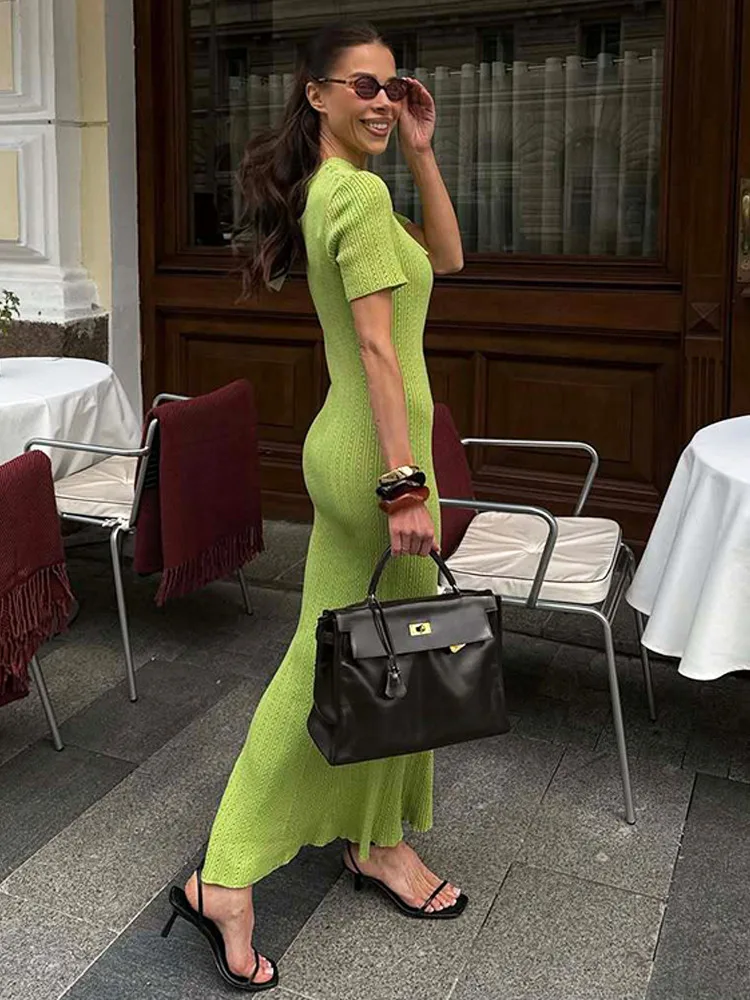 Introducing the Hollow Out Knitted Short Sleeve Maxi Dress, a stunning blend of casual elegance and contemporary design. This exquisite dress promises to be your go-to choice for any summer occasion, whether it’s a relaxed brunch with friends or a sophisticated evening out. Crafted from high-quality materials, it embodies a luxurious feel while ensuring comfort throughout your day.