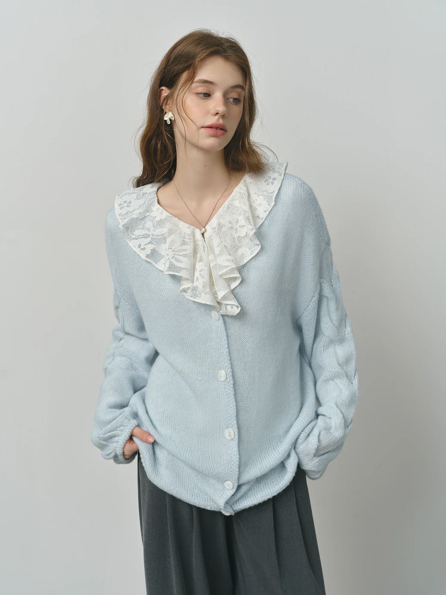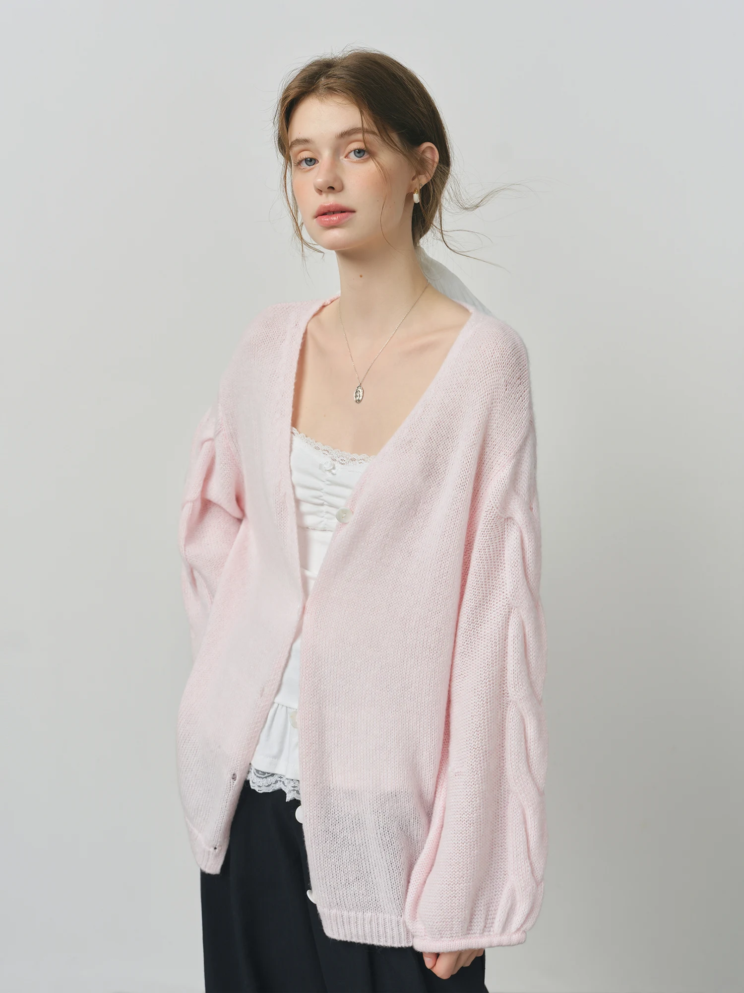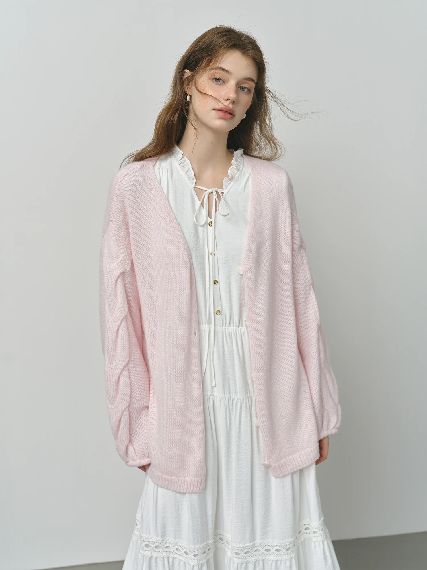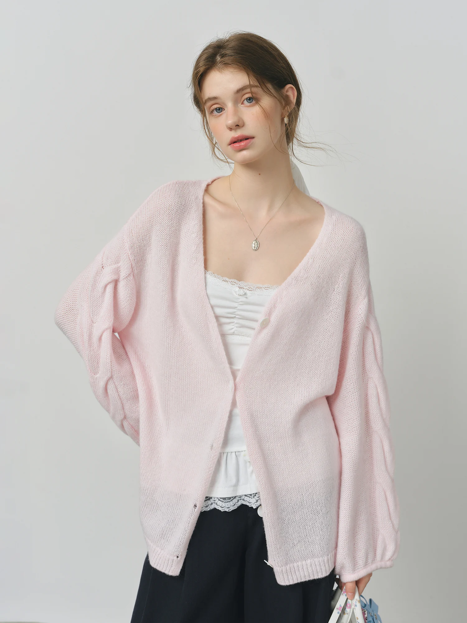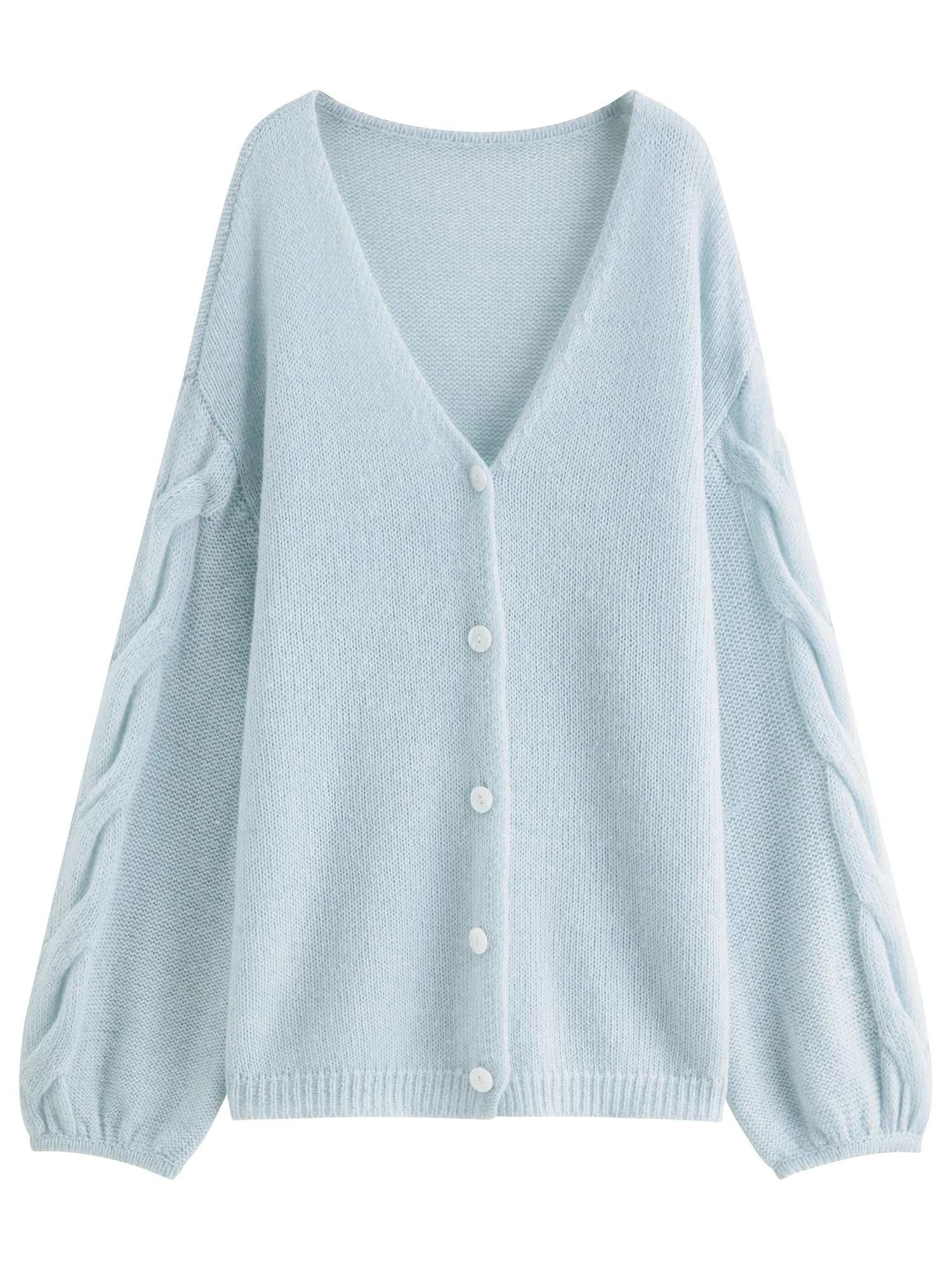 The Alpaca Wool Cable Knit V-Neck Cardigan Jacket offers a loose, relaxed fit crafted from a blend of alpaca wool, sheep wool, and nylon. Designed for women seeking understated comfort and modern minimalism, this cardigan suits a range of occasions and seasons.
