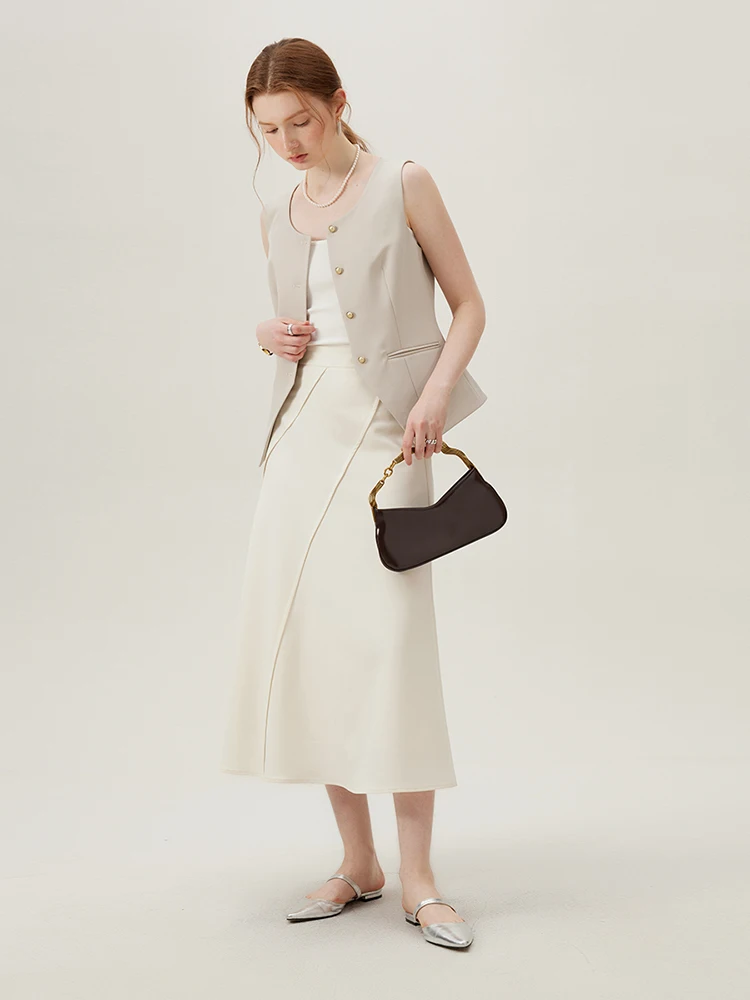 Embodying modern minimalism with a refined silhouette, the Asymmetric Drape Midi Skirt with Zipper Waist is tailored for the contemporary woman who appreciates understated sophistication. This skirt features an empire waistline and mid-calf length, offering a flattering trumpet shape that subtly contours the body while allowing ease of movement. The asymmetrical draped detail introduces an elegant visual interest without overwhelming the clean lines, making it a versatile piece suitable for both professional and leisurely settings.
