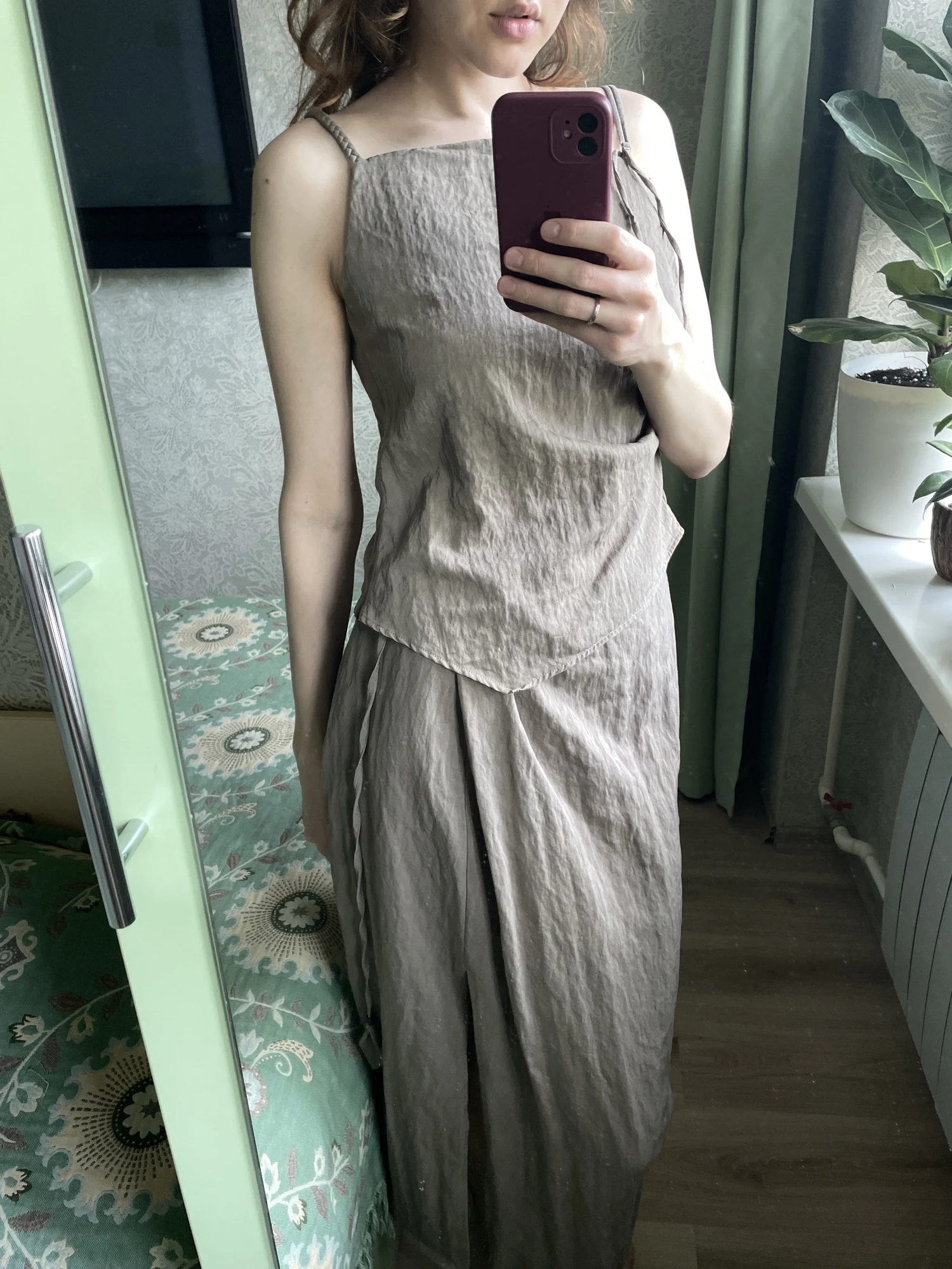 3 reviews for Asymmetrical Lyocell Blend Skirt and Suspender Top Set