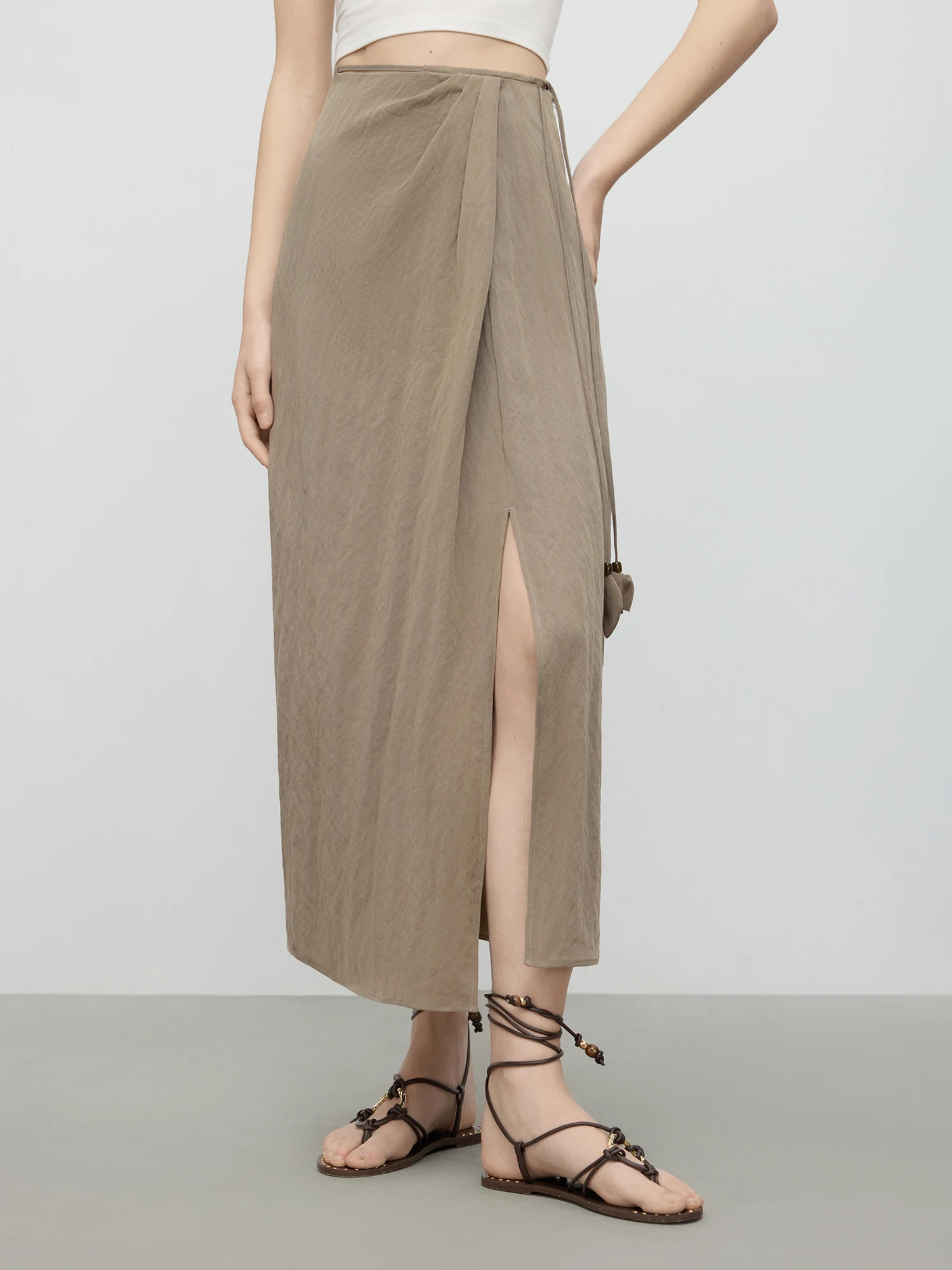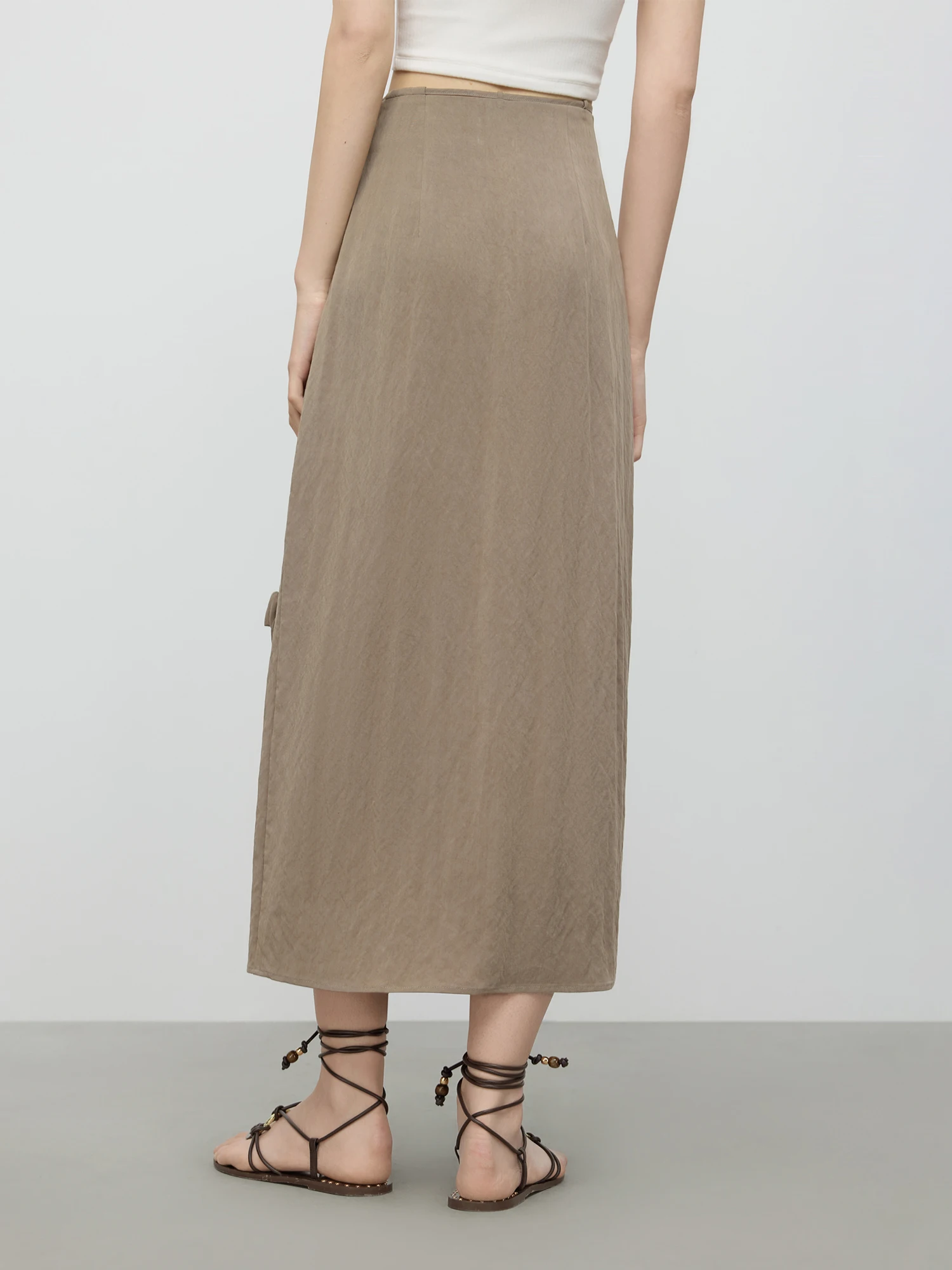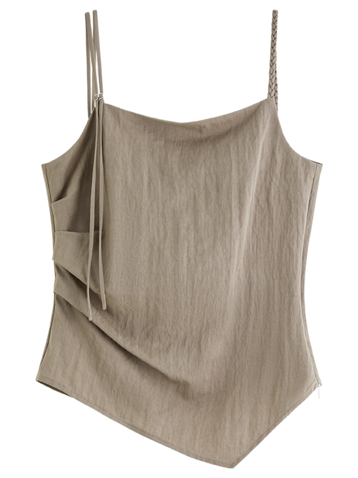 - Design: Features an asymmetrical hemline on the midi skirt paired with a sleek camisole suspender top for a minimalist silhouette.