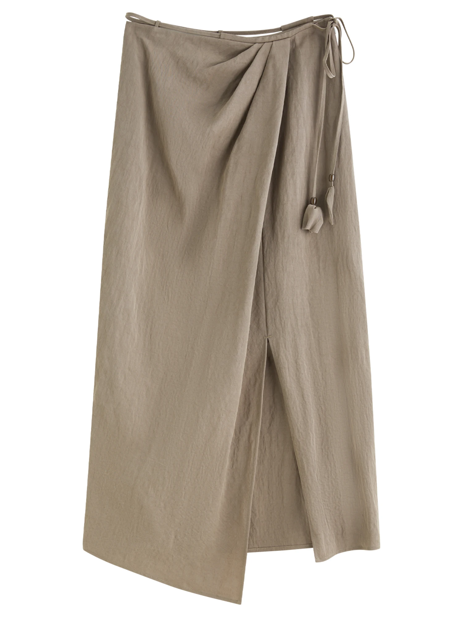The set features a midi skirt with an asymmetrical hemline paired with a camisole-style suspender top, ideal for spring and summer occasions such as beach outings or relaxed gatherings. Its solid pattern and minimalist silhouette make it a versatile addition to a modern wardrobe.