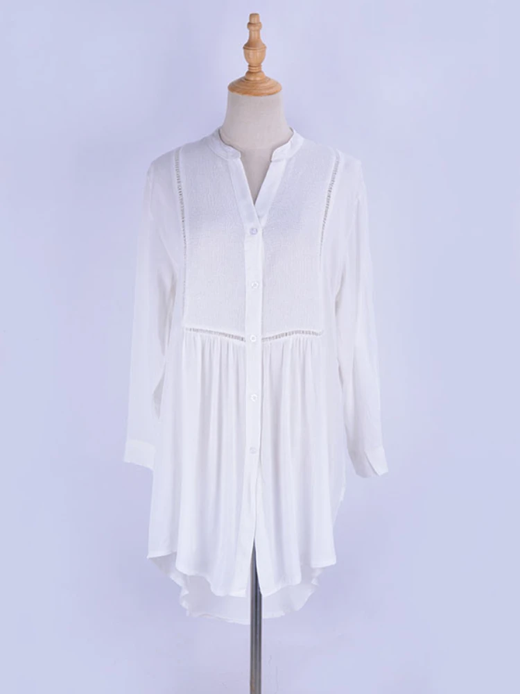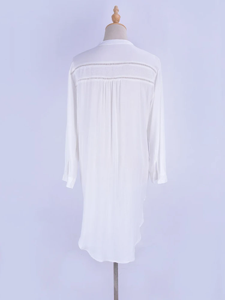 White Rayon Swimsuit Cover Up – Lace Cutout Beach Tunic