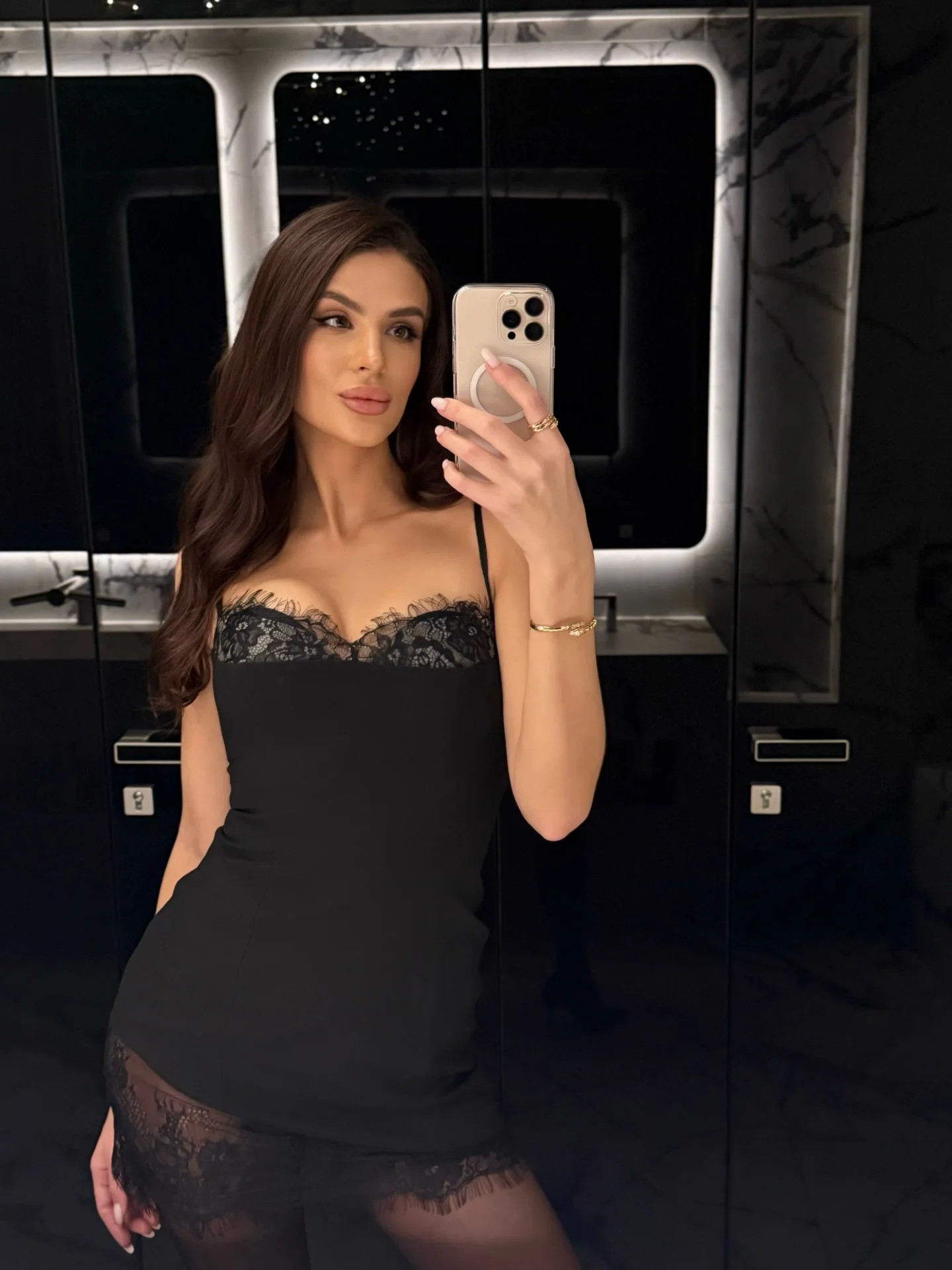 266 reviews for Black Lace Patchwork Satin Mini Dress with Medium Stretch