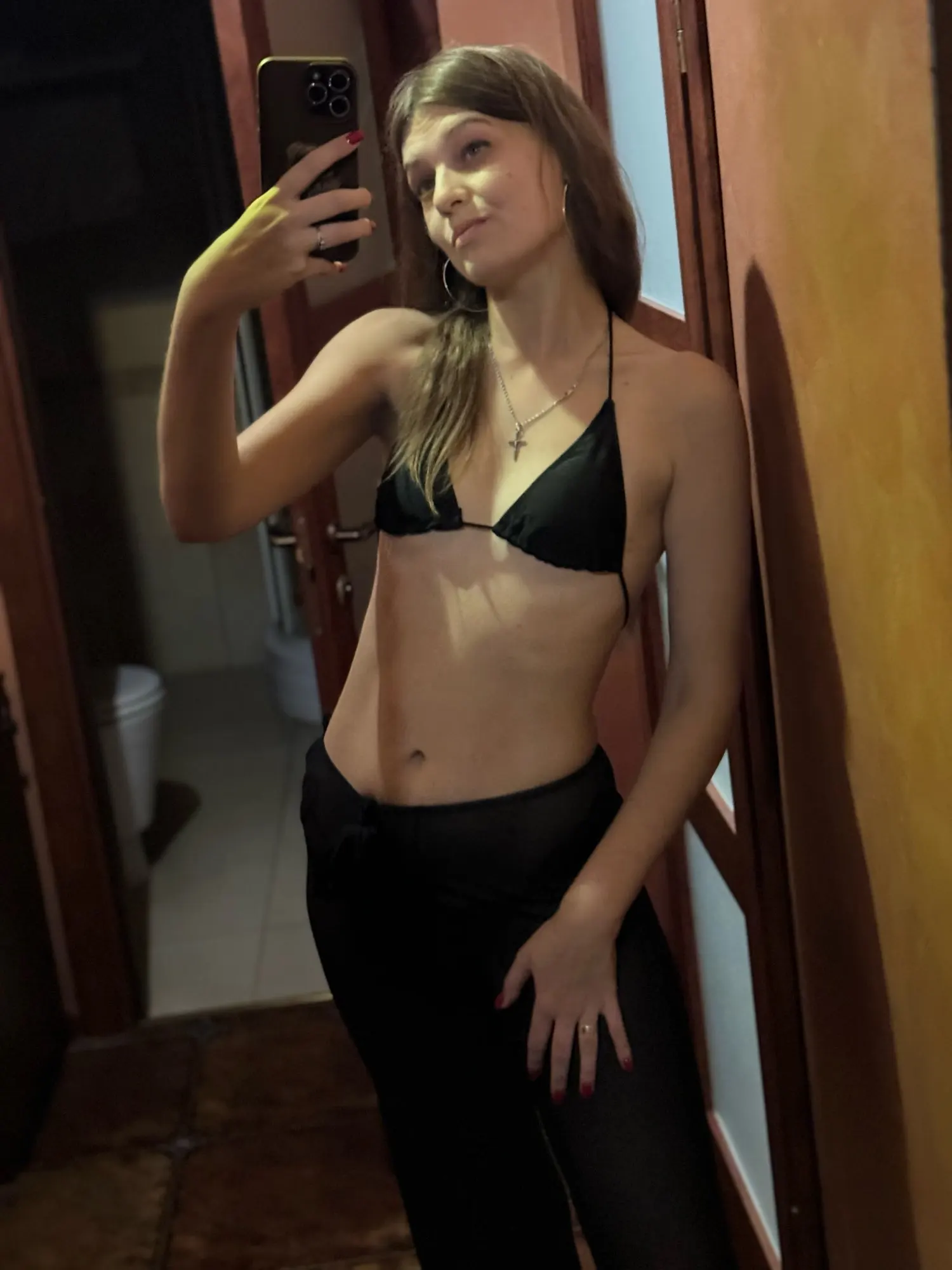 The set consists of a bikini, thong and a transparent skirt. Looks very cool. I recommend it!