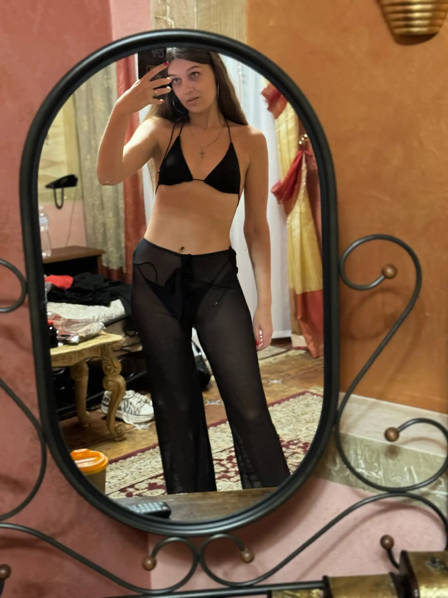 Perfect factory quality and tailoring, trendy model with lightweight beach pants, bikini with soft removable cups/inserts in the bodice, excellent fit, thin chiffon pants ideal for the beach.