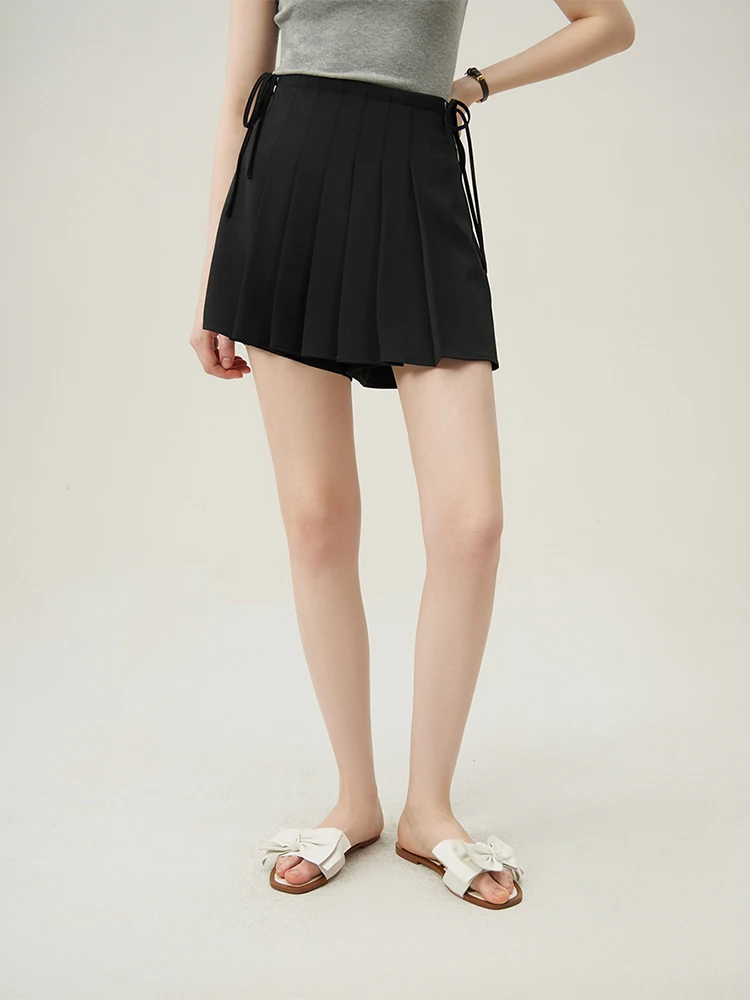 Black Pleated A-Line Culottes with Front Skirt Detail