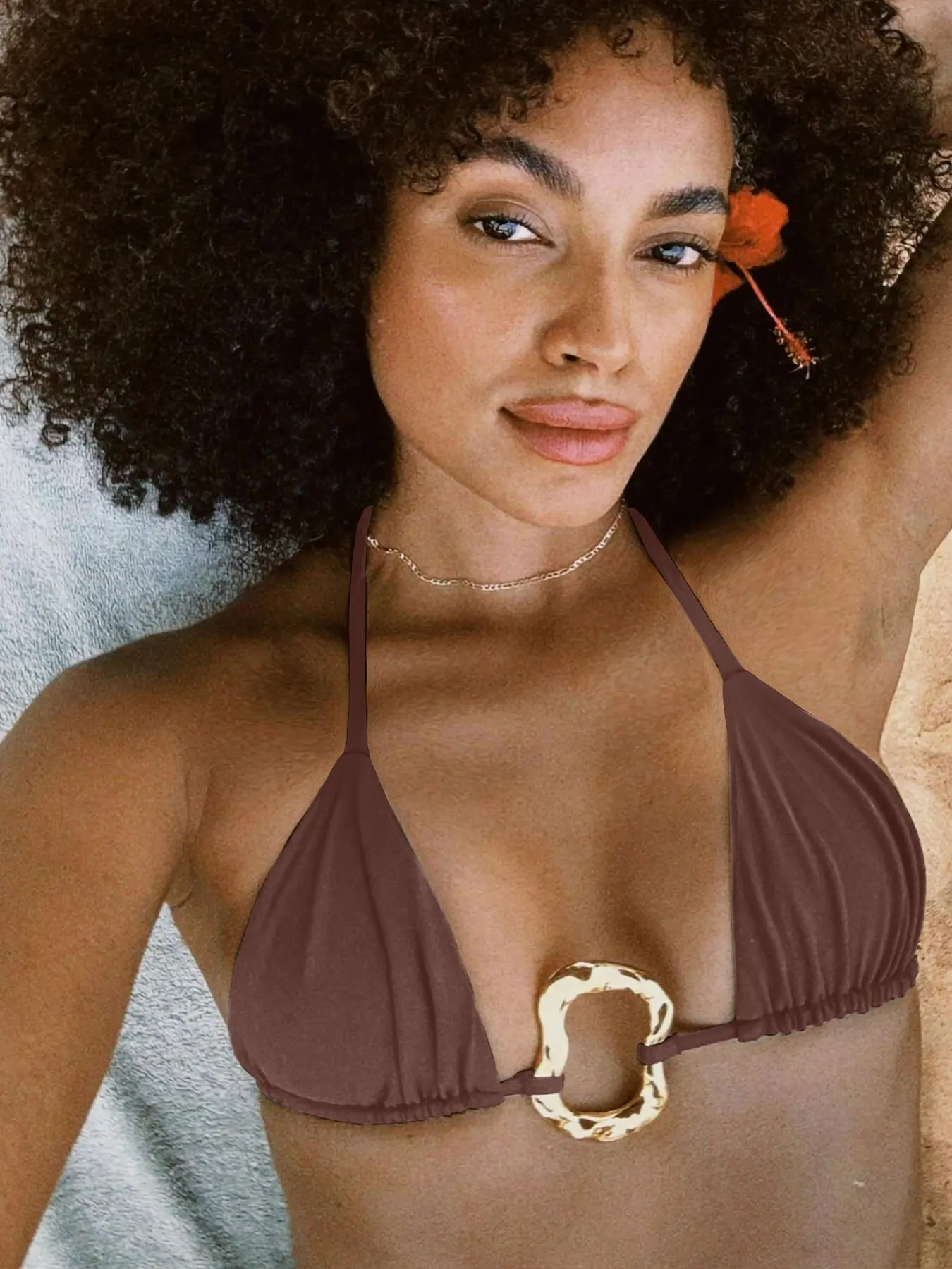 Styling Suggestions: Pair this bikini with a lightweight linen shirt and leather sandals for a relaxed beach day. For poolside lounging, add a wide-brimmed hat and minimal gold jewellery that complements the subtle gold hardware on the straps. Transition to a casual coastal look by layering with a sheer kaftan and slip-on espadrilles. The set also works well under a tailored beach dress for effortless summer evenings.