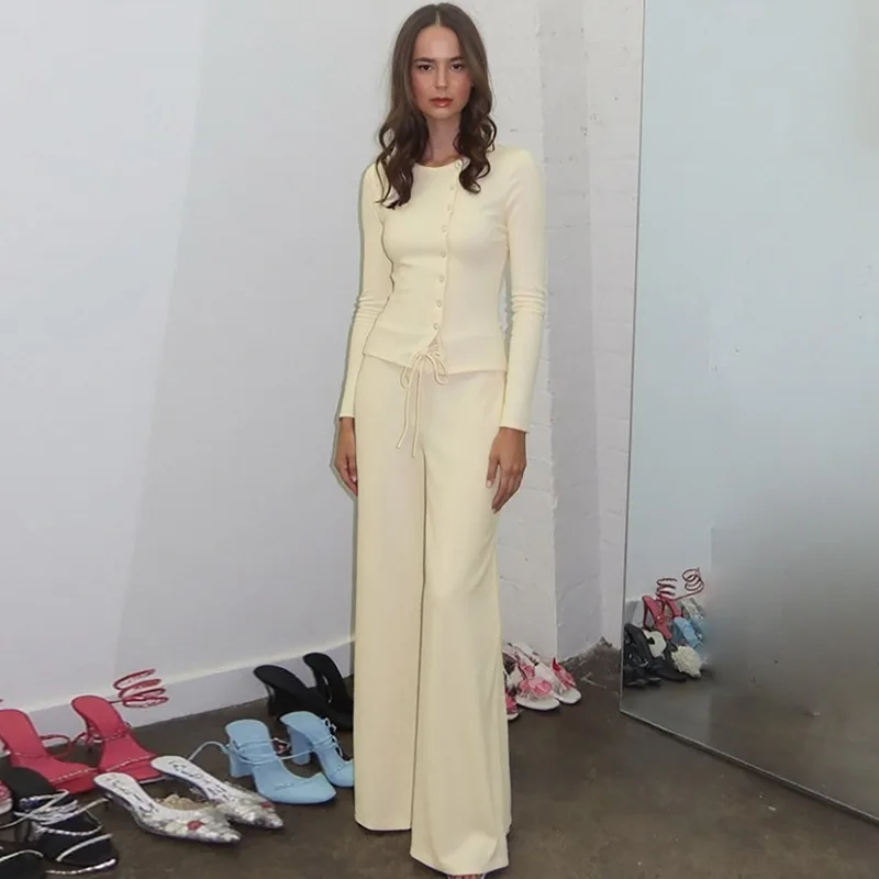 Step into the season with confidence wearing this exquisite two-piece cardigan and lace-up pants set that perfectly captures contemporary streetwear sophistication. This stunning yellow ensemble transforms your wardrobe with its seamless blend of comfort and refined style, making it your go-to choice for memorable nights out and special occasions.