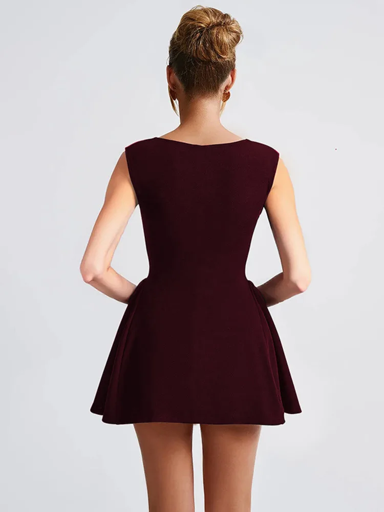 Sophisticated high-waist pleated mini dress crafted from premium polyester blend with subtle stretch for ultimate comfort. Features flattering V-neckline and sleeveless design that creates a streamlined silhouette. Available in timeless black, warm apricot, and rich wine tones. Versatile pullover style transitions seamlessly from cocktail events to evening celebrations. The natural waistline and A-line profile offer a confident, polished look for any special occasion.