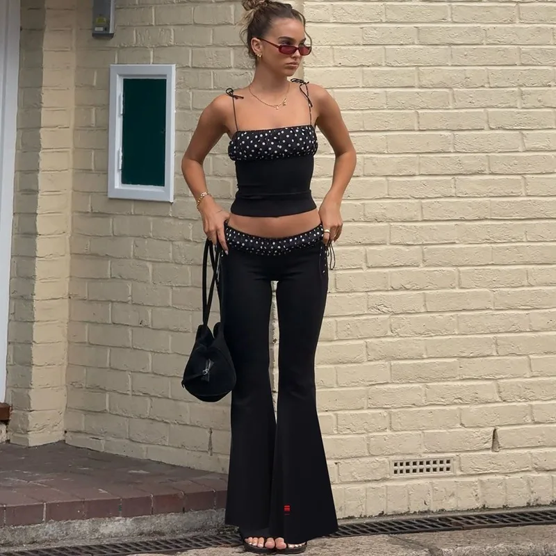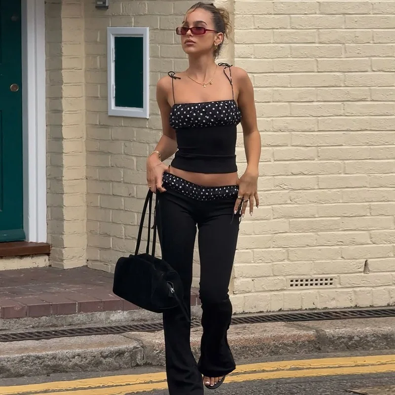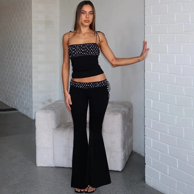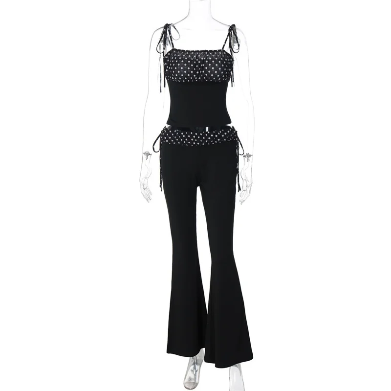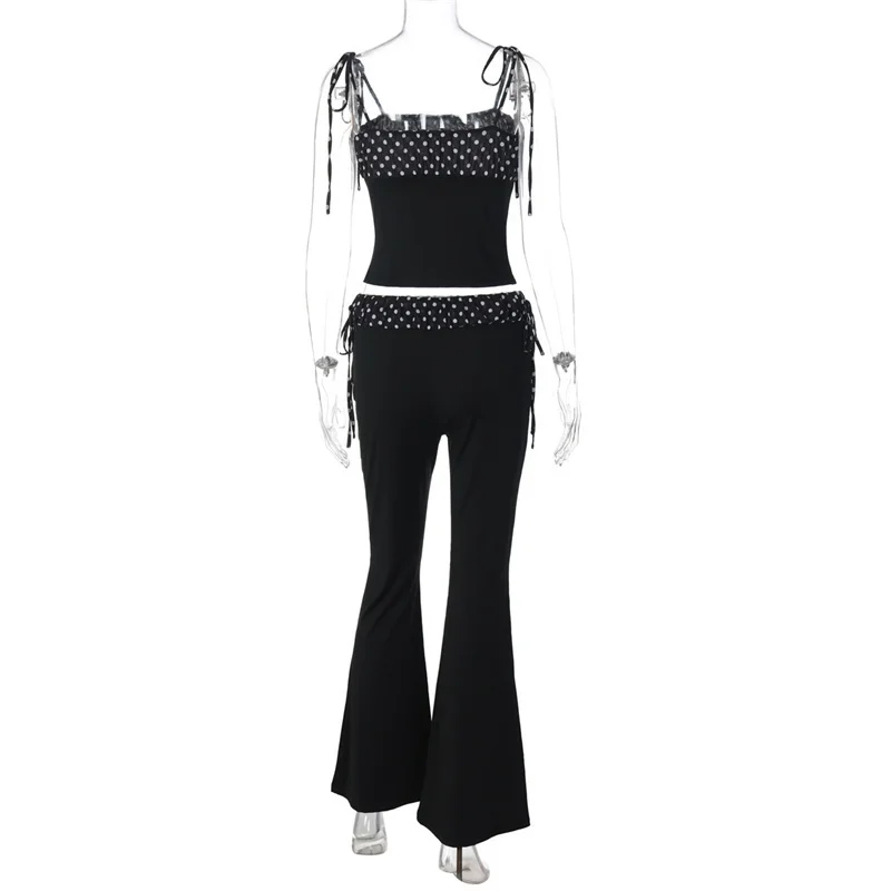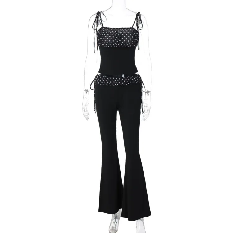 Chic Polka Dot Flared Set – Bodycon Top & Wide Leg Pants