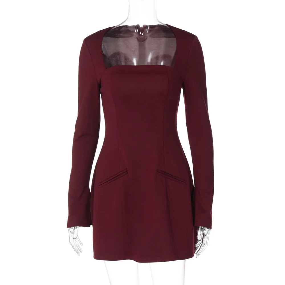 Elegant Square Neck Bodycon Mini Dress with Zipper