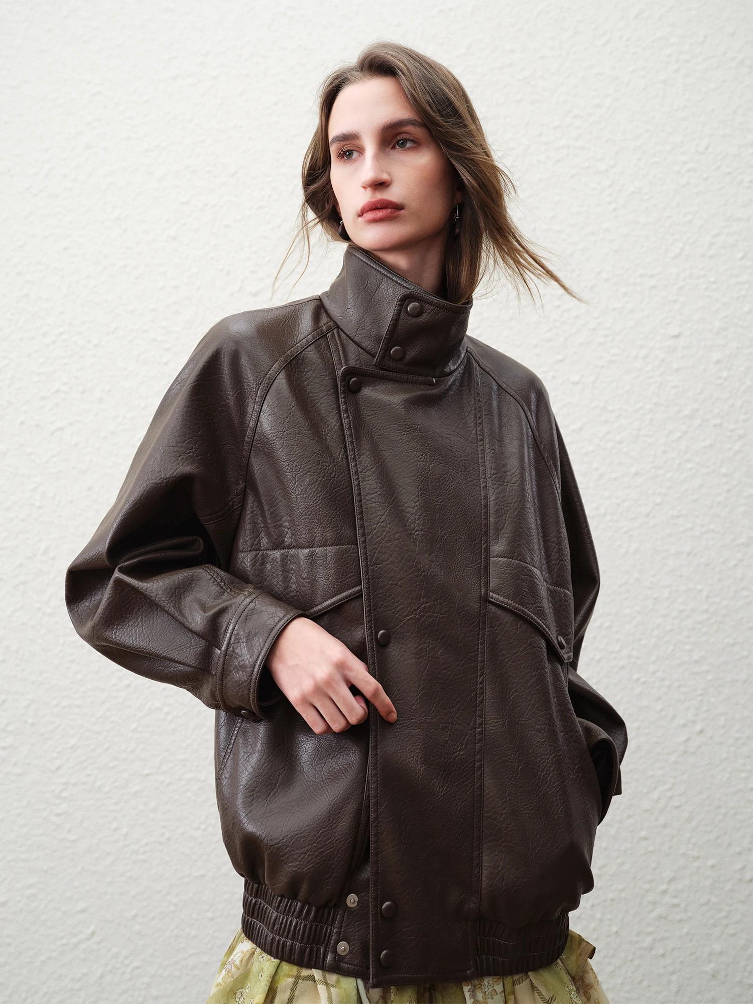 Embrace refined simplicity with this brown faux leather jacket, an elevated take on modern outerwear designed for the discerning woman. Crafted from 100% polyester, the jacket offers a smooth, structured finish that balances durability with a subtle sheen. Its loose silhouette and regular length ensure ease of movement and layering versatility, making it a reliable choice across transitional seasons like spring and early winter.