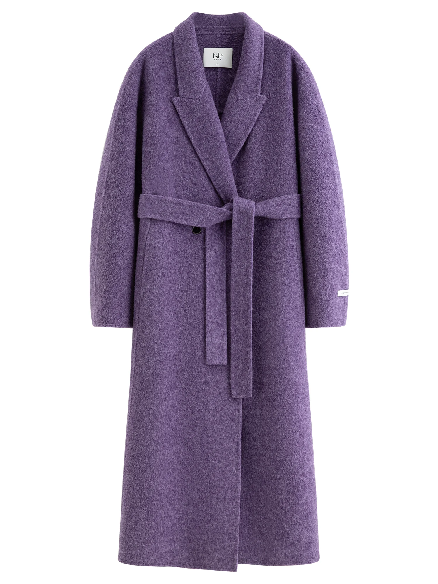 Q: What are the available colours and sizes?A: This coat is offered in beige, dark grey, and purple, with sizes ranging from XXS to L.