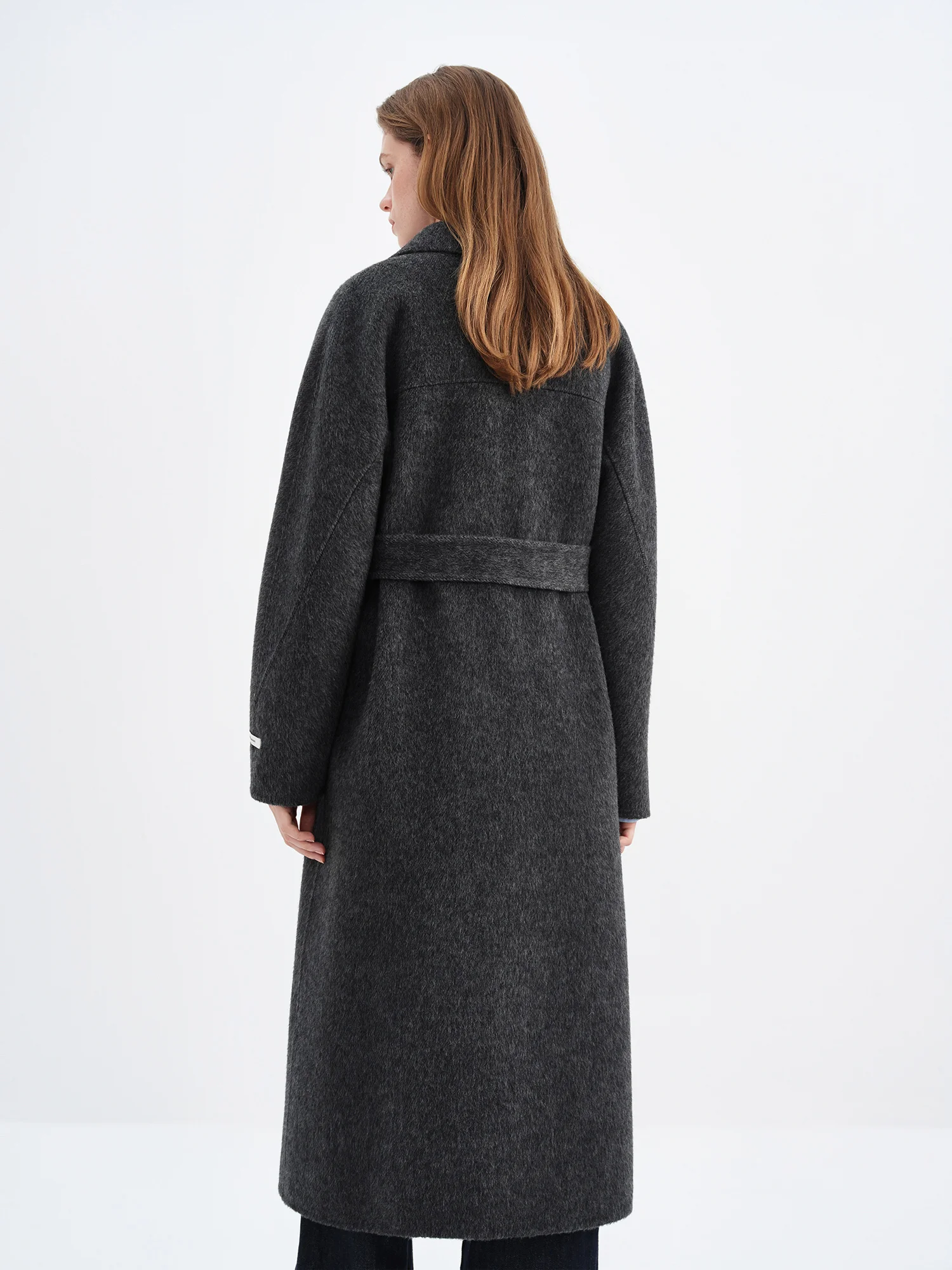 A: The coat features a loose, robe-style fit designed to drape comfortably without restricting movement. Please consult the size guide for detailed measurements.