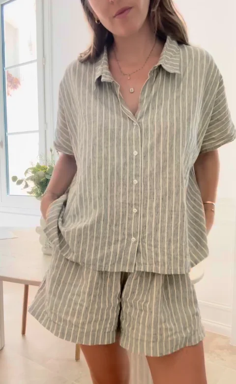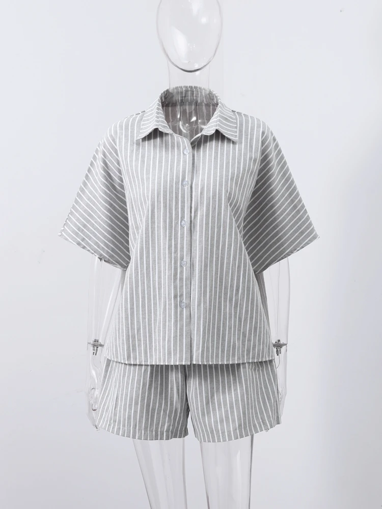 122 reviews for Chic Striped Women’s Two-Piece Shorts Set for Effortless Style