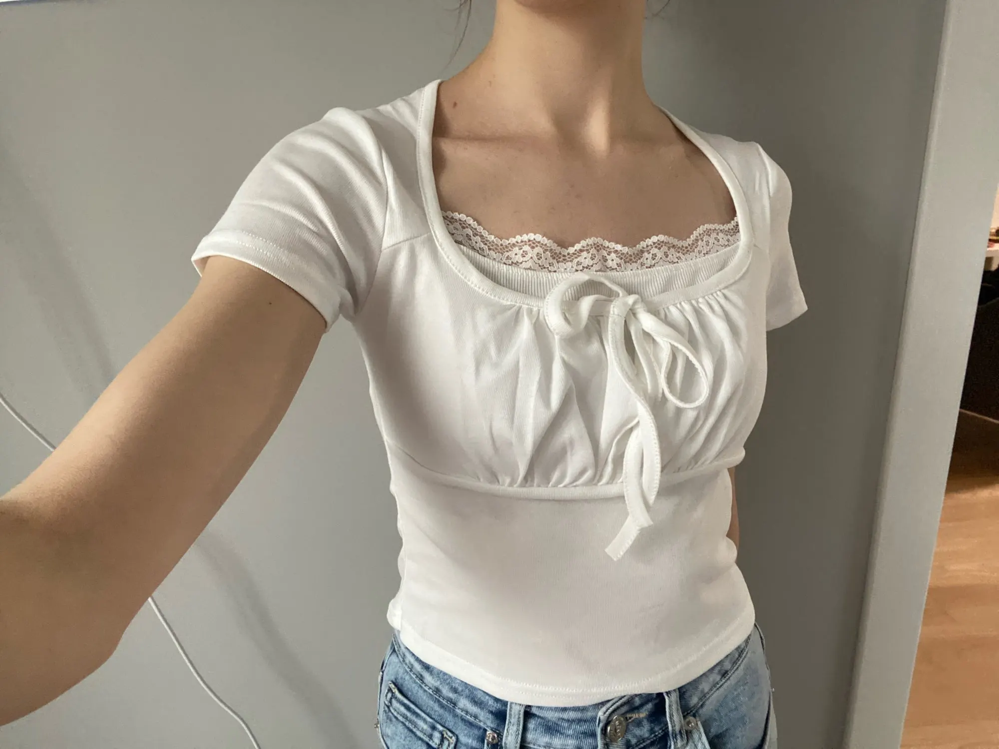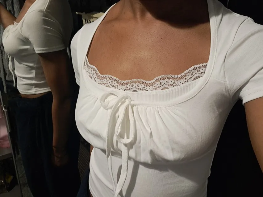 - Short sleeves with delicate lace detailing, perfect for warm summer days