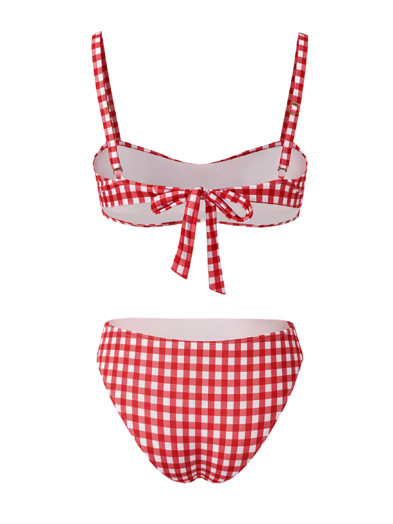 Chic Red & White Plaid Bikini Set with Knotted Detail