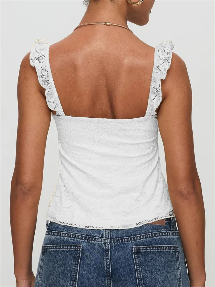 Vintage Lace Ruffle Camisole – Square Neck Summer Tank Top
