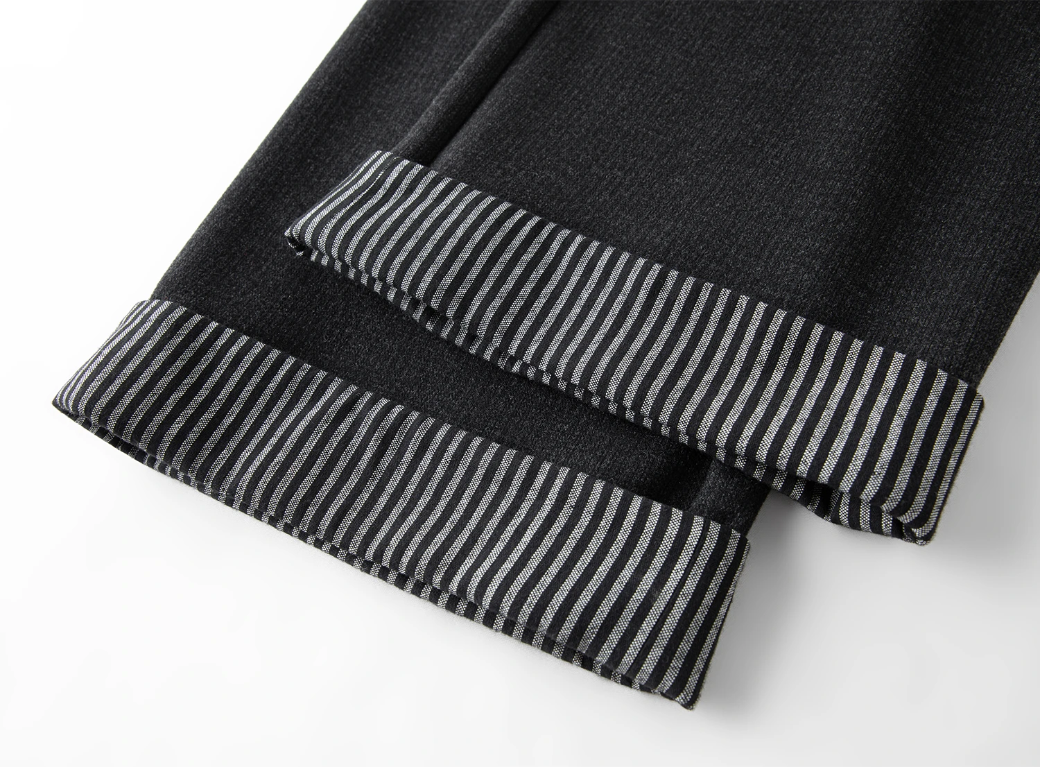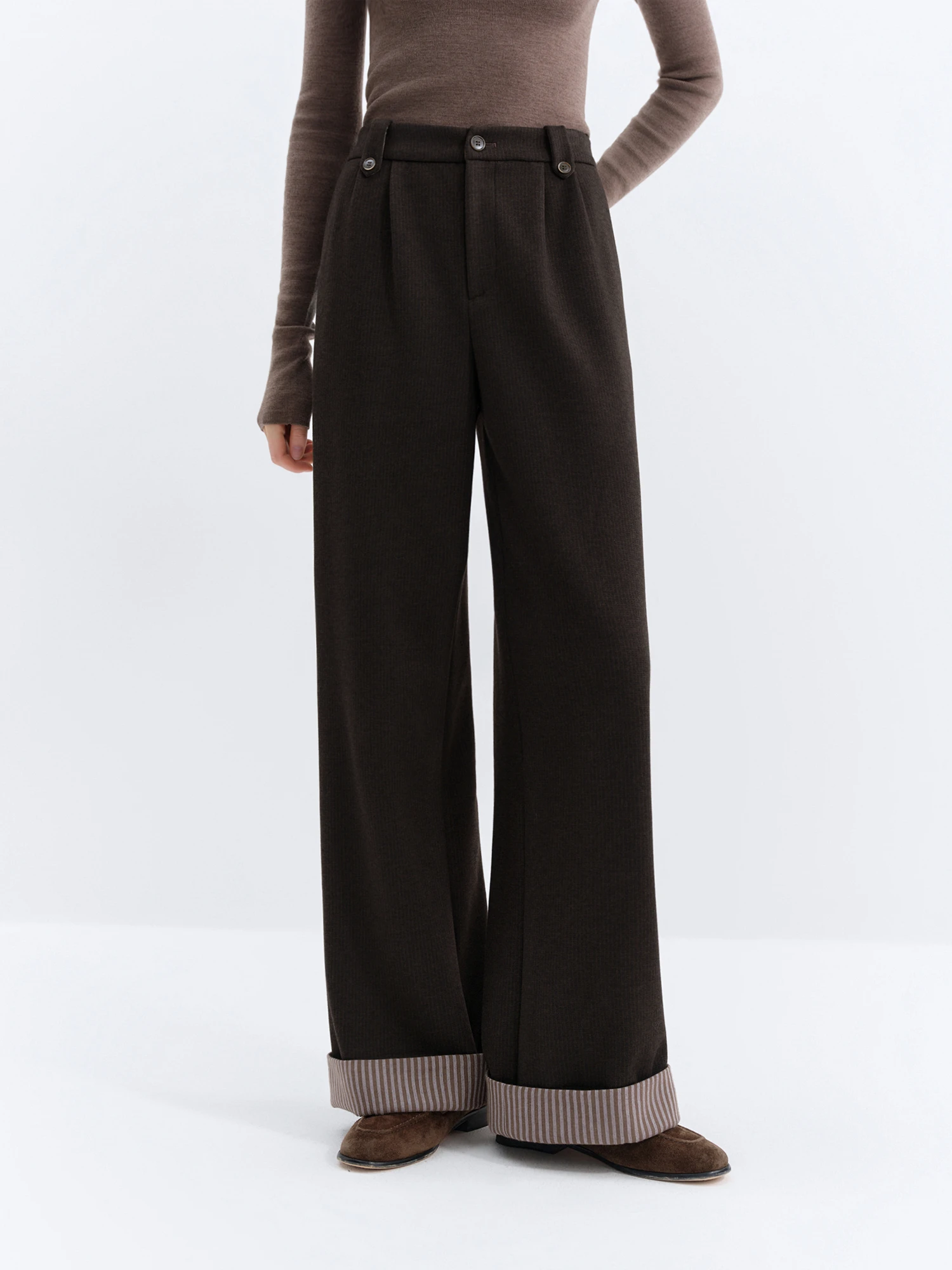 Wool Striped Wide-leg Trousers with Rolled-up Cuffs