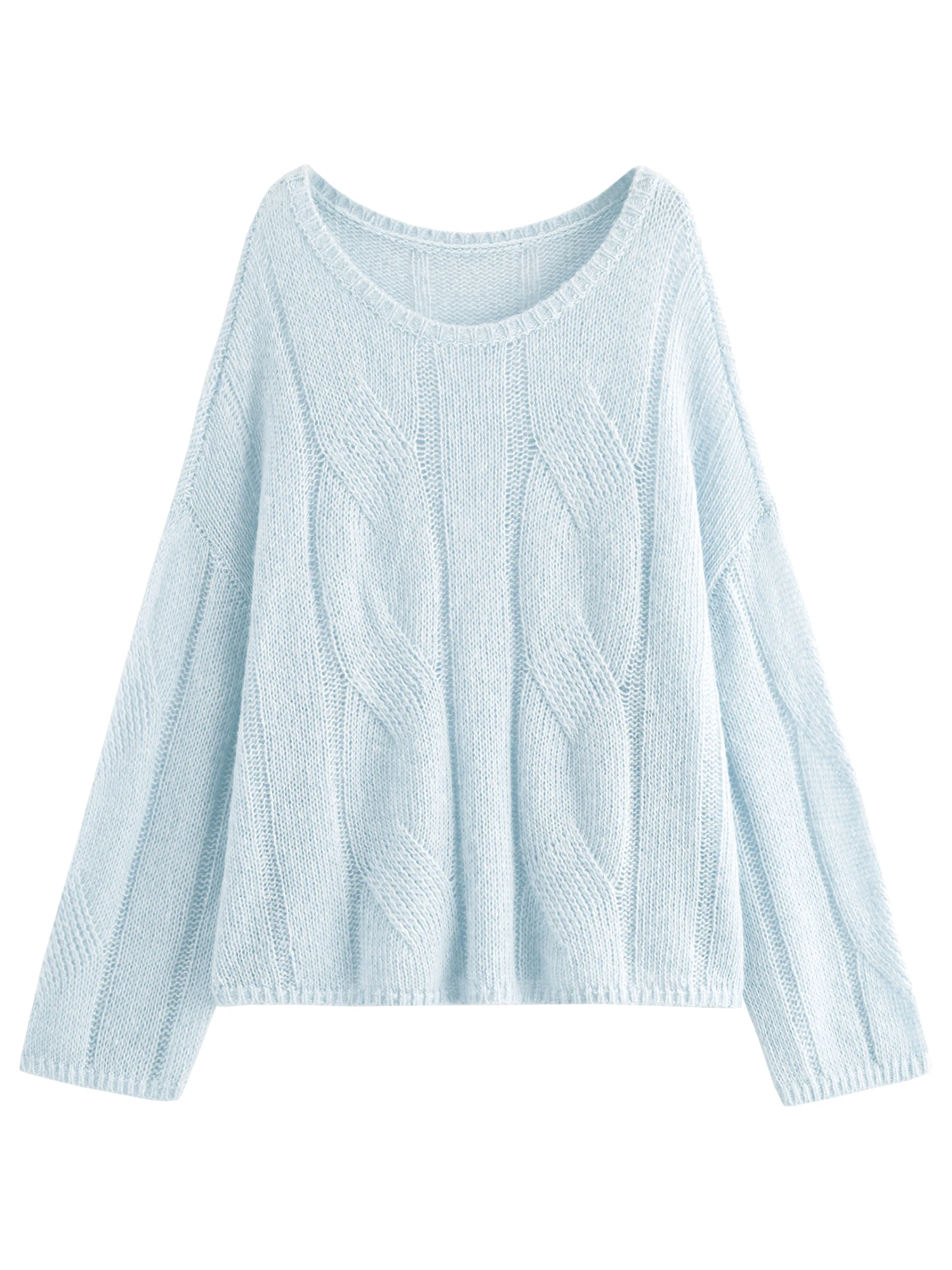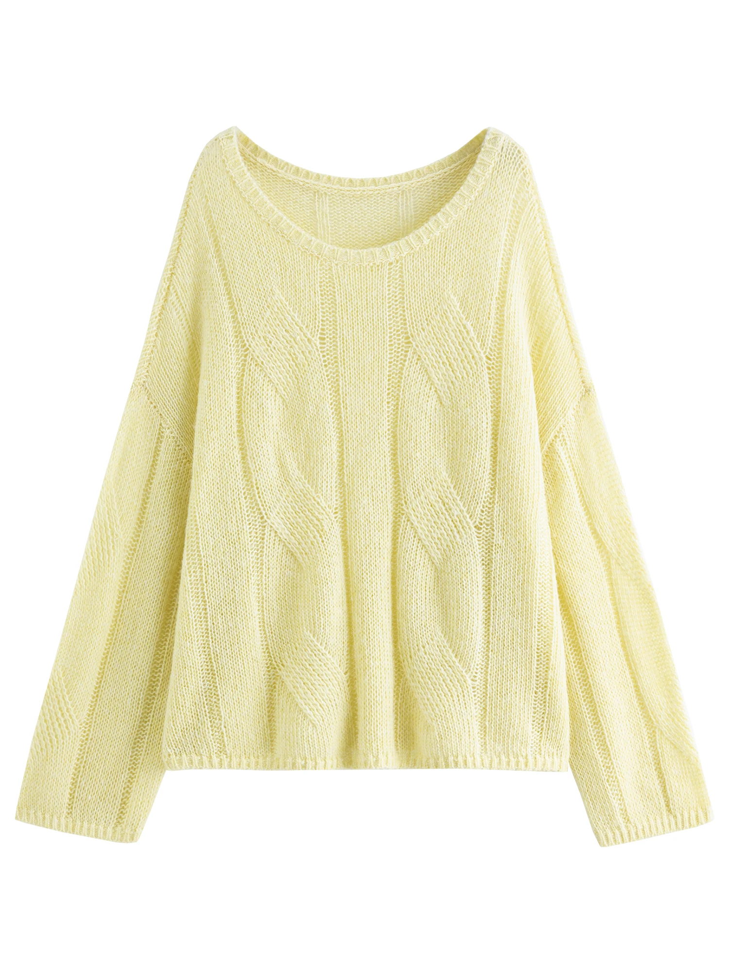 Cozy Alpaca Wool Blend Cable Knit Sweater with Loose Fit