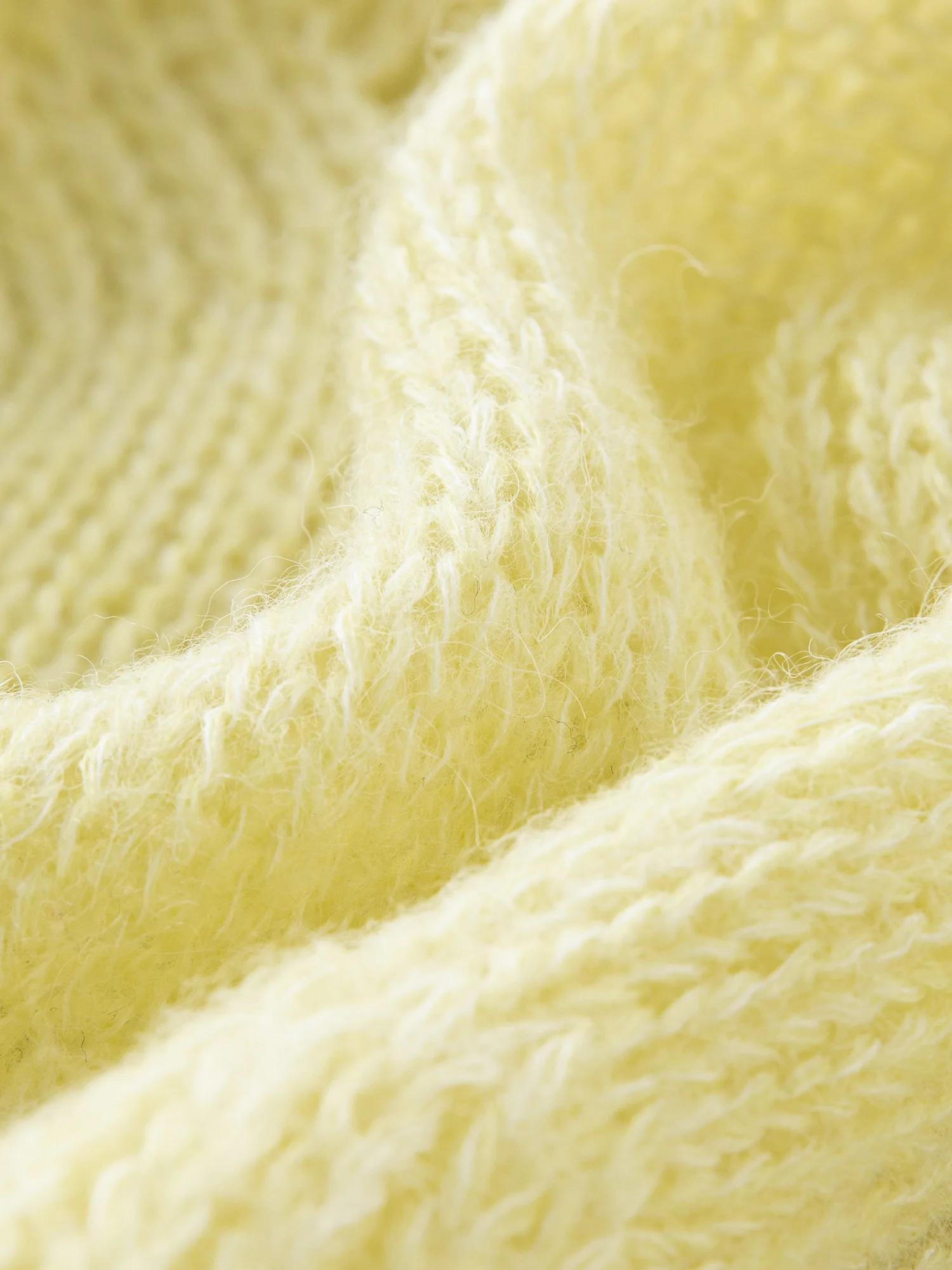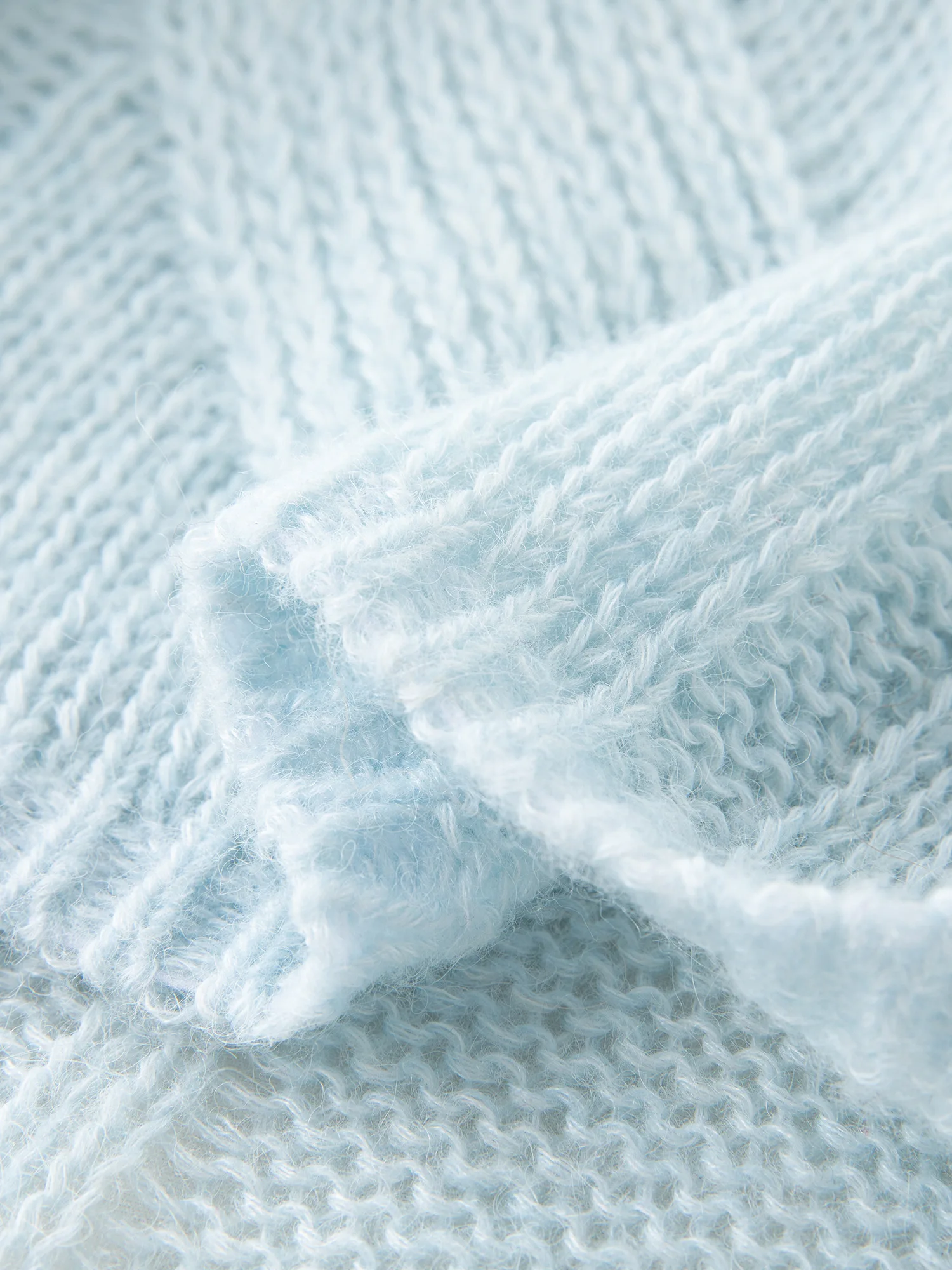 Fabric & Care: The blend of alpaca and sheep wool with nylon creates a soft yet structured knit with a subtle texture. The fabric is lightweight and breathable enough for transitional weather, while the wools provide gentle warmth. To preserve the quality and softness, dry cleaning is advised.