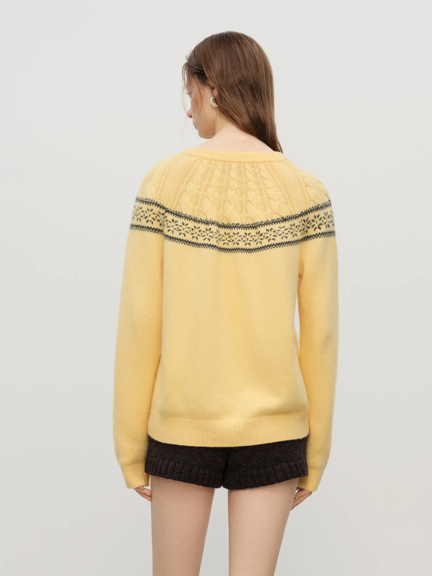 The Cozy Nelly Knit Sweater features a regular fit that accommodates layering without restricting movement. Slight elasticity in the fabric ensures a comfortable, flattering silhouette across sizes XS to XL. The medium fabric weight balances warmth with breathability, making it adaptable for varying temperatures.