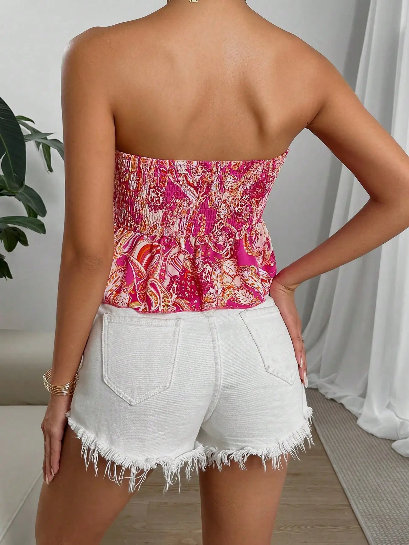 Unleash your inner trendsetter with this stylish strapless summer top, designed for the modern woman. Crafted from luxurious broadcloth, it features a stunning backless design and vibrant print that exudes confidence. Perfect for summer nights, its super-short length and flattering fit make it an essential addition to your wardrobe. Choose from sizes S to XL and embrace your elegance.