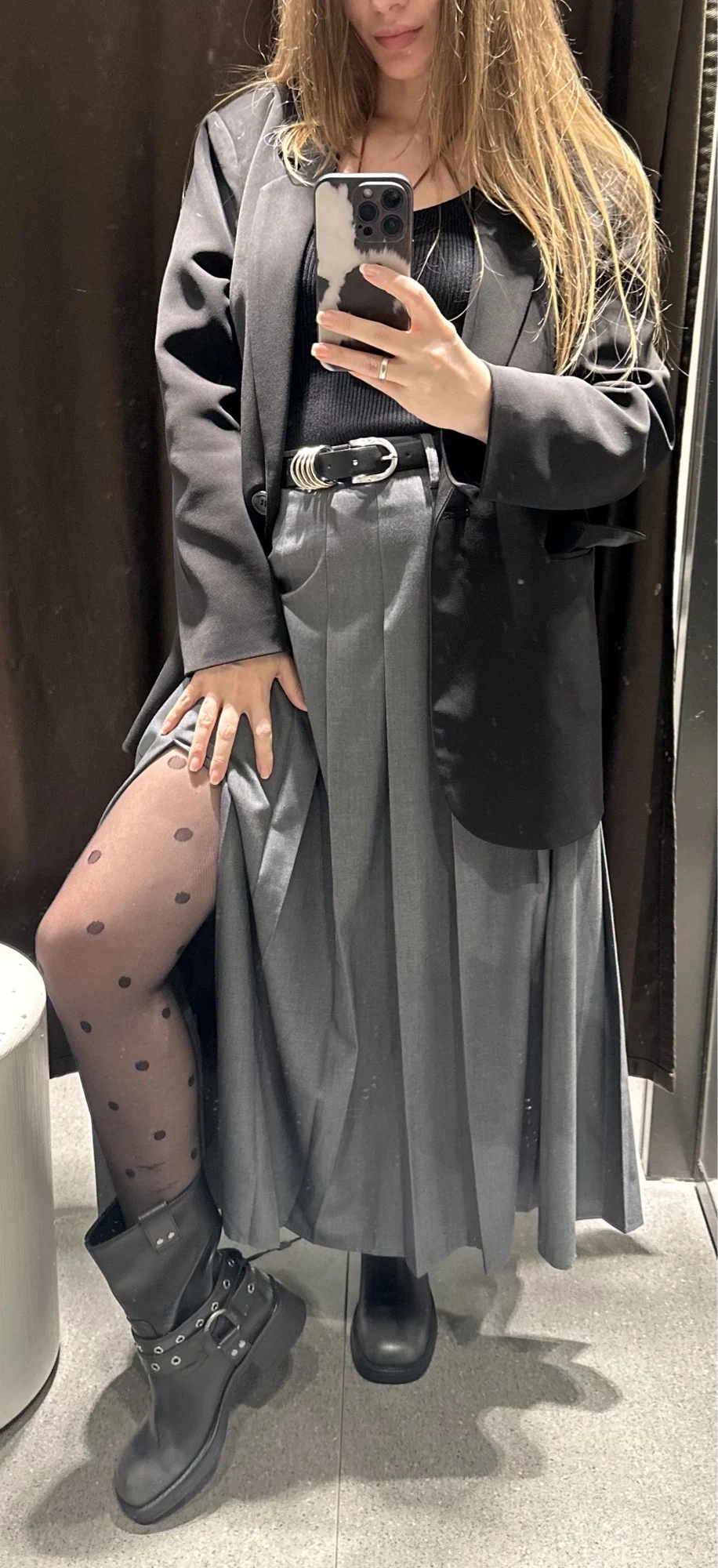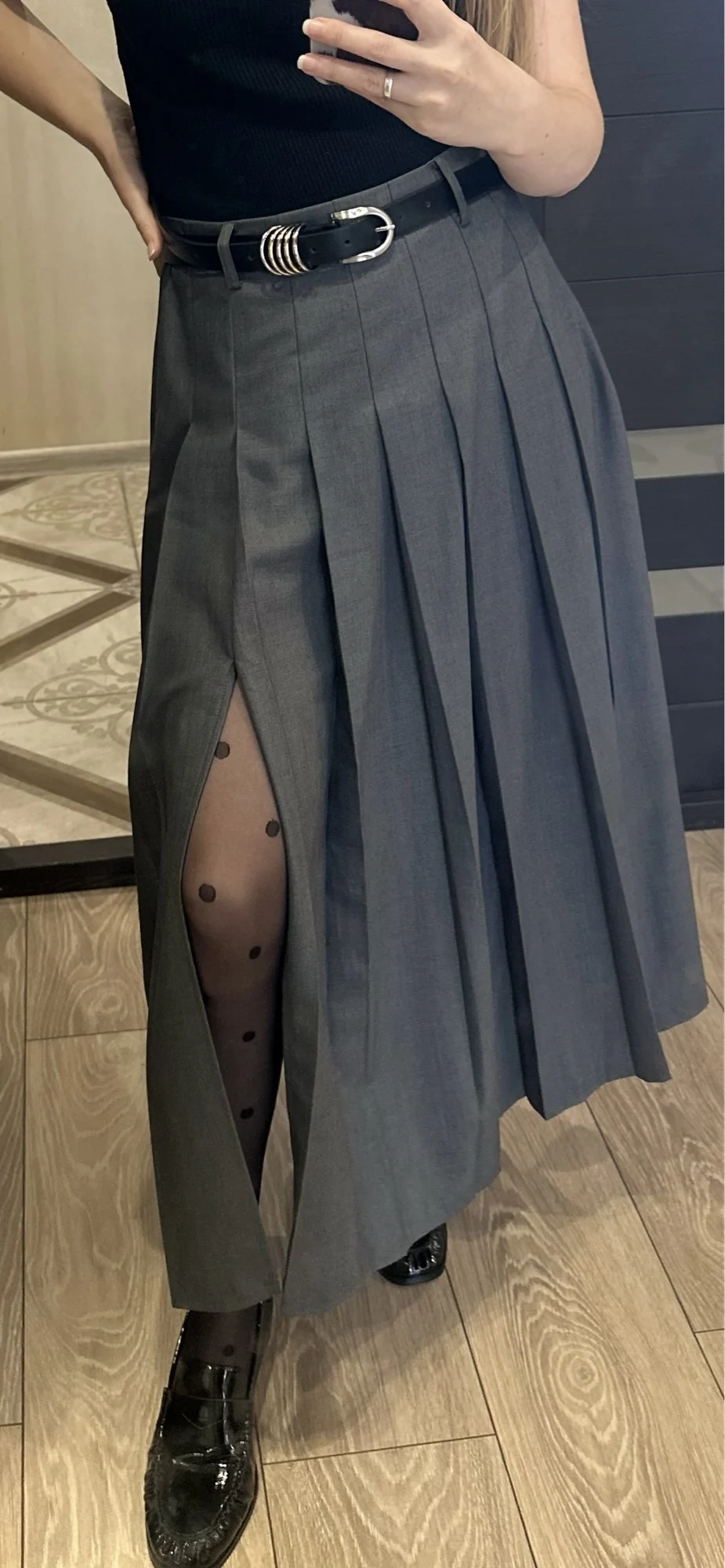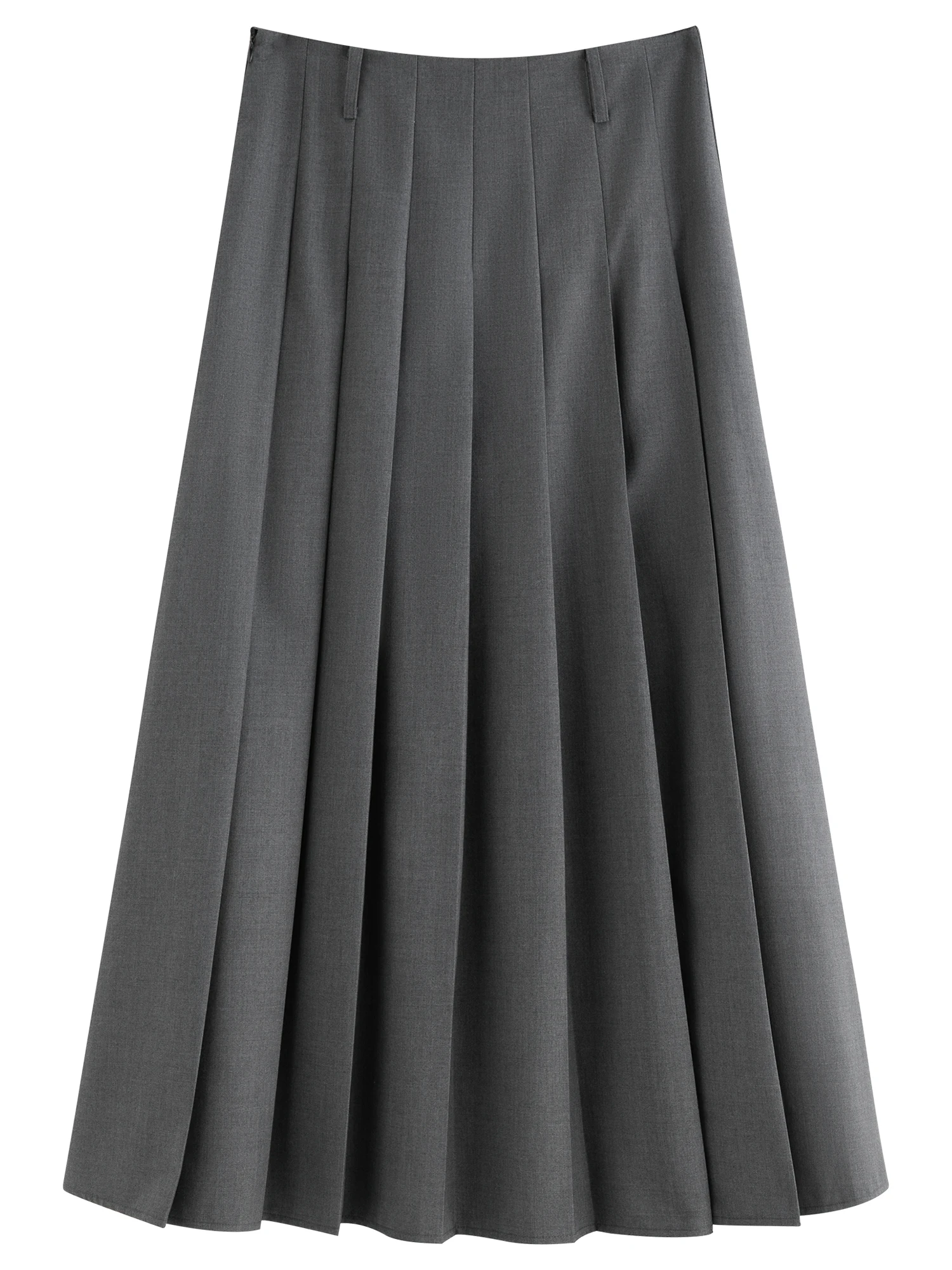 40 reviews for Dark Grey Retro Pleated Midi Skirt with Natural Waistline