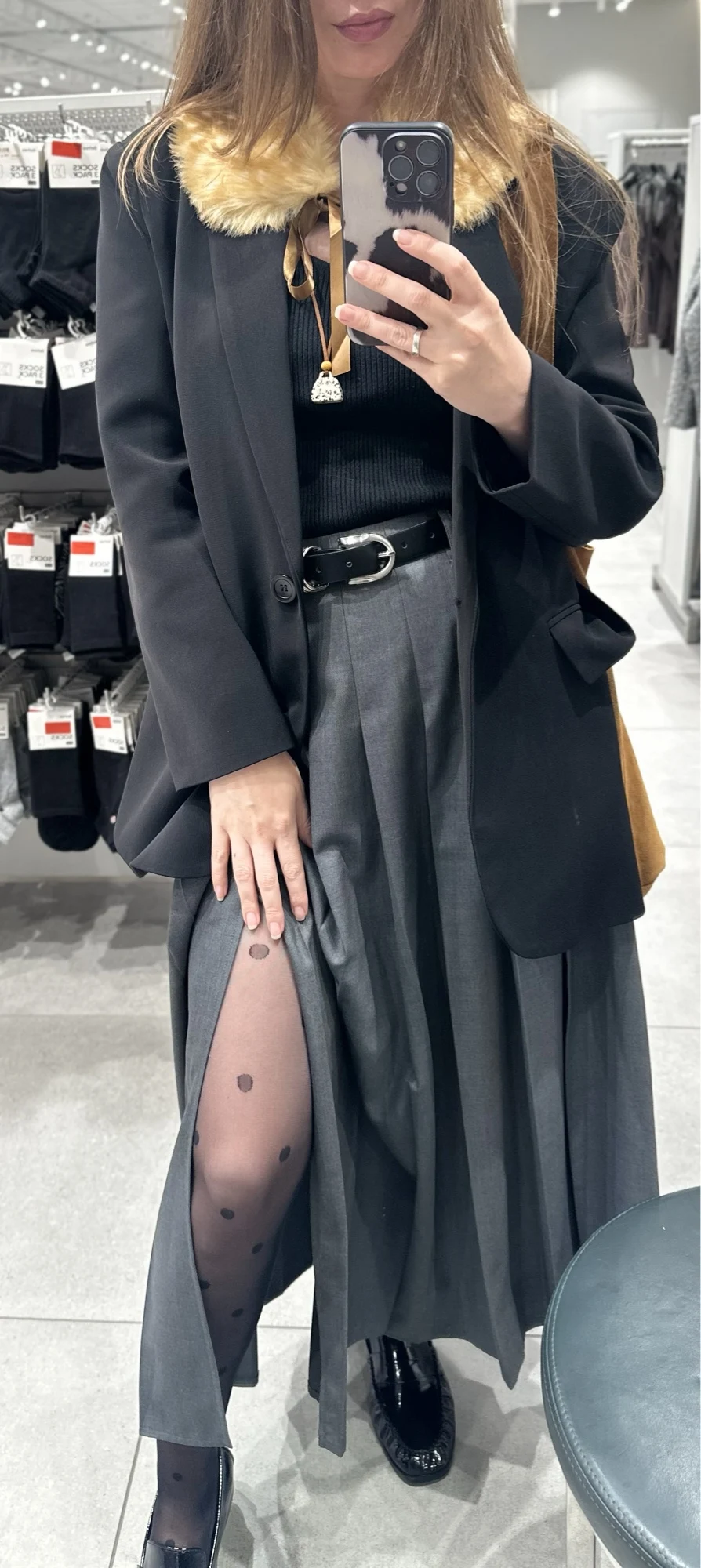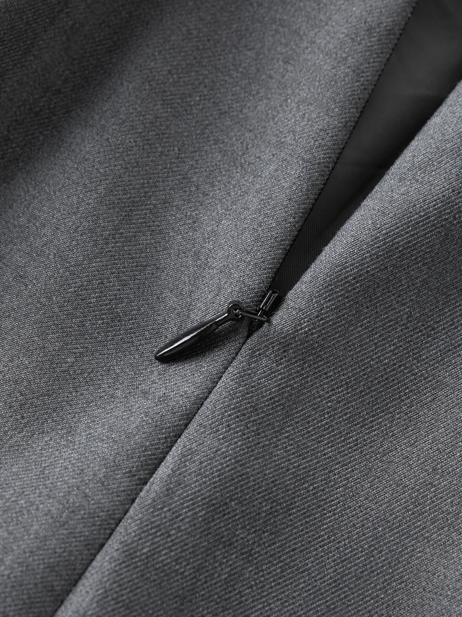 Q: Can this skirt be worn for both casual and formal occasions?A: Its understated silhouette and dark grey tone make it versatile enough for casual, office, or semi-formal settings depending on styling.