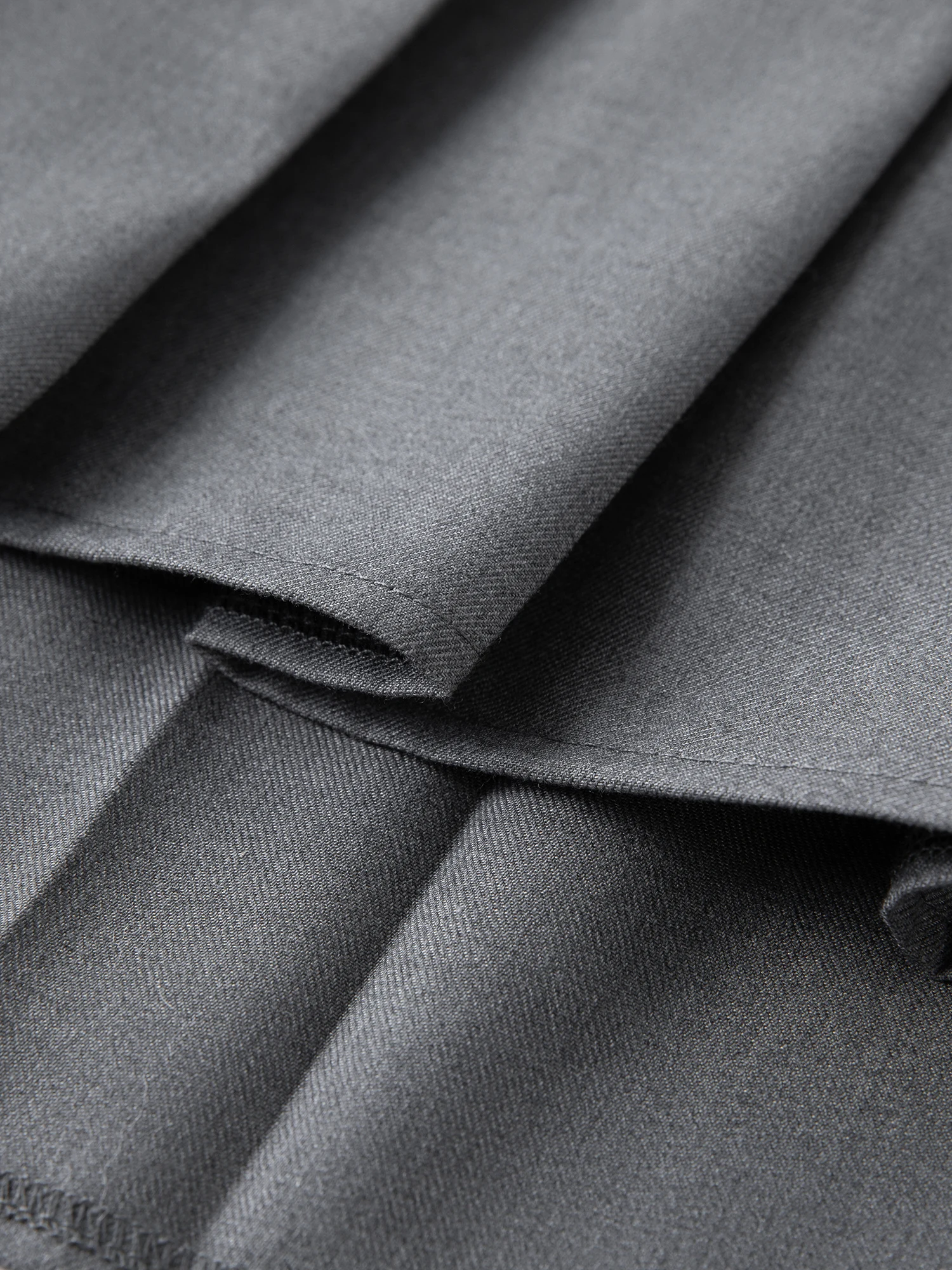 Q: What is the fabric texture like?A: Made from a blend of 77.1% polyester and 22.9% viscose, the fabric offers a structured feel with a soft hand. It maintains shape while allowing gentle movement through its pleated design.