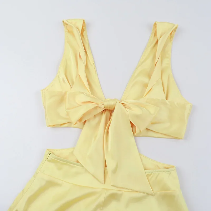 Stunning Deep V Bow Bodycon Mini Dress Beach Summer Style