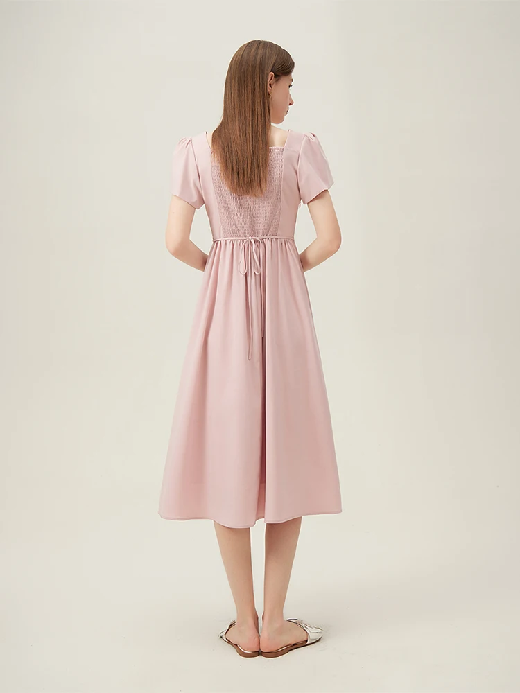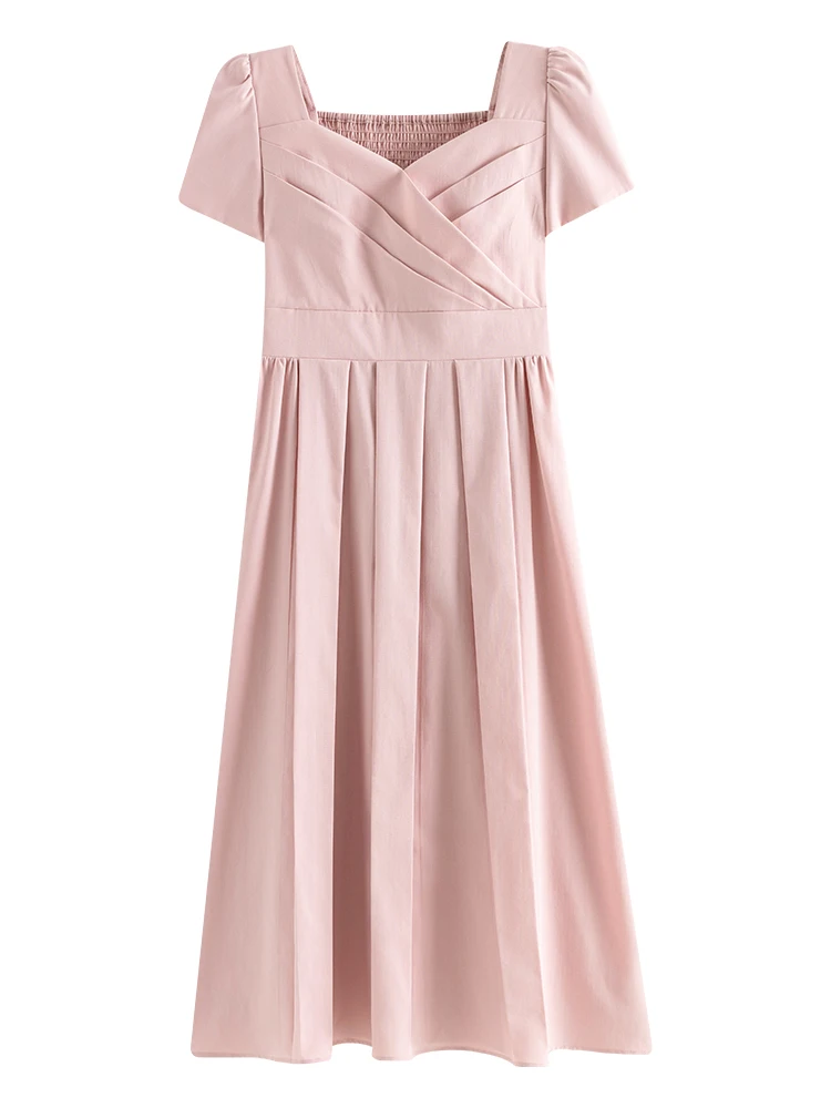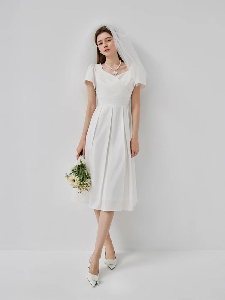 1 review for Elegant White A-Line Midi Dress with Square Neckline