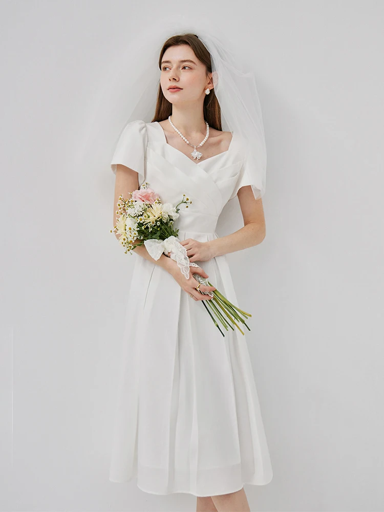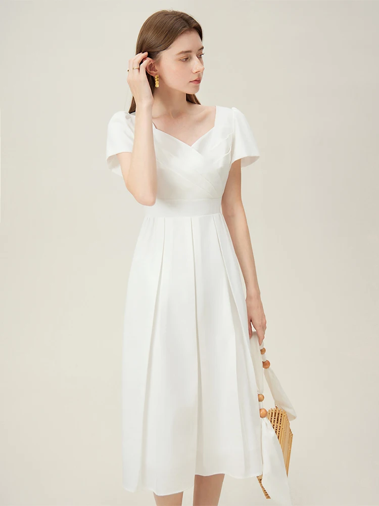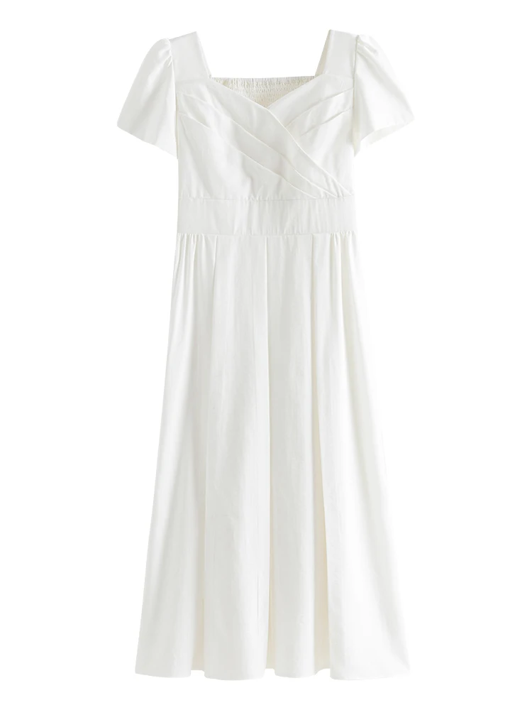 Elegant White A-Line Midi Dress with Square Neckline