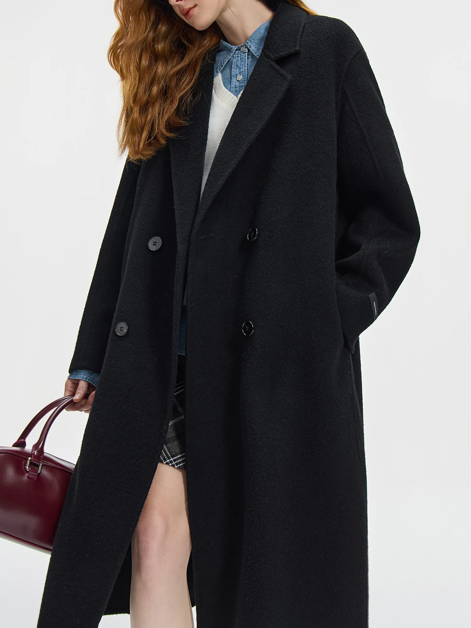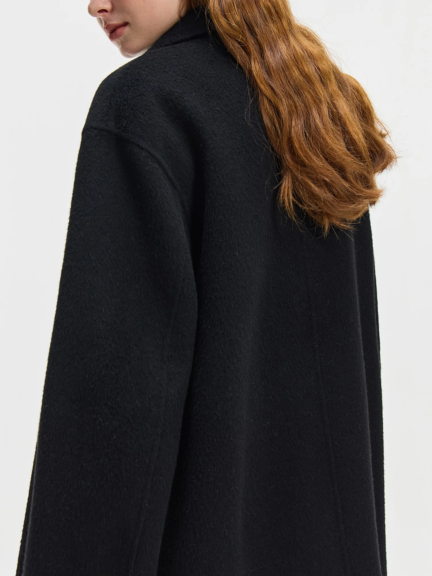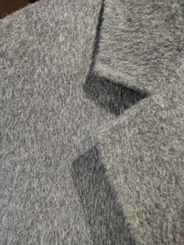 Q: What is the texture and weight of the fabric like?A: Made from 100% wool with a double-faced knit, this coat feels thick and structured, providing warmth while maintaining a smooth, elegant drape.