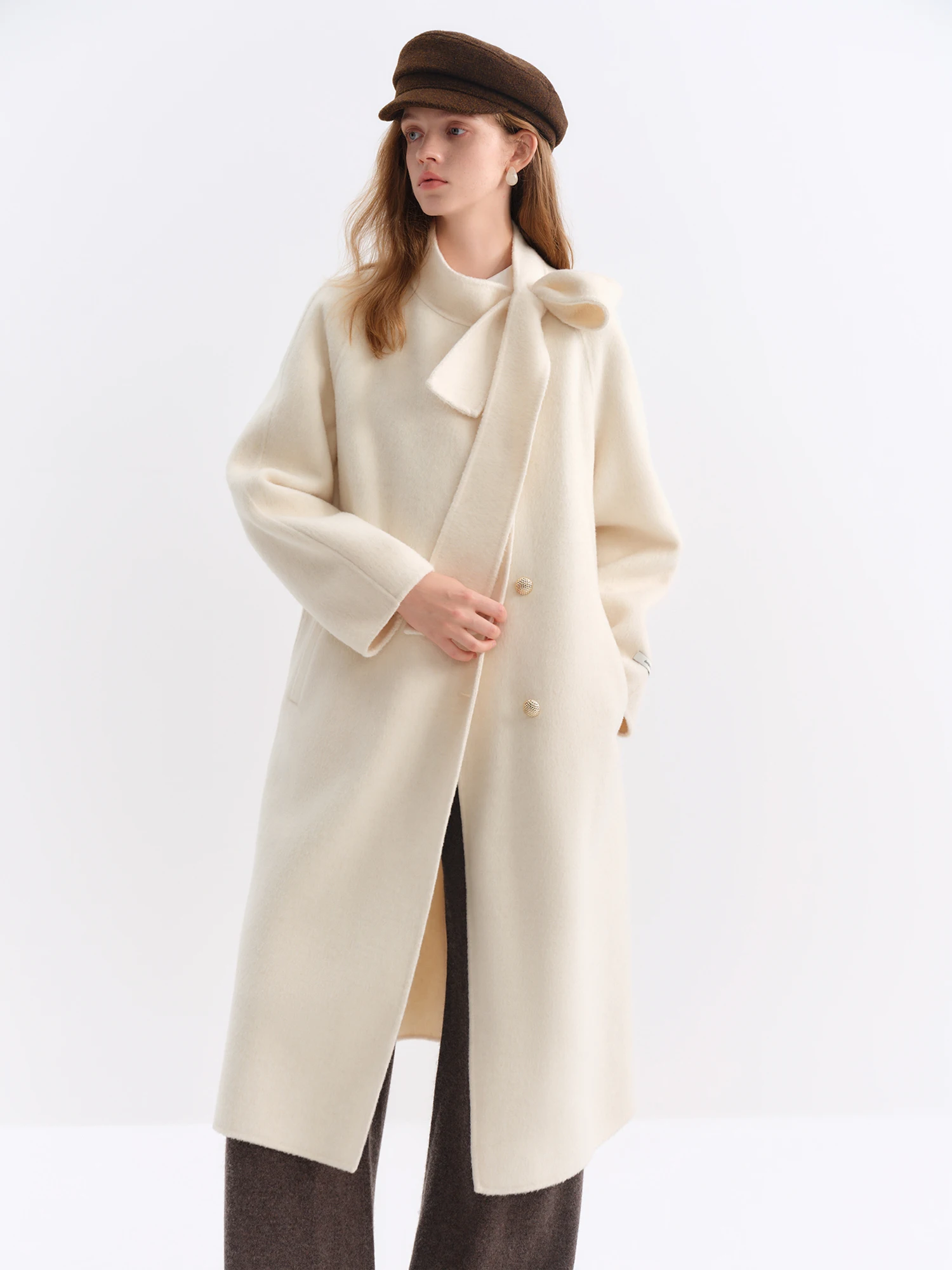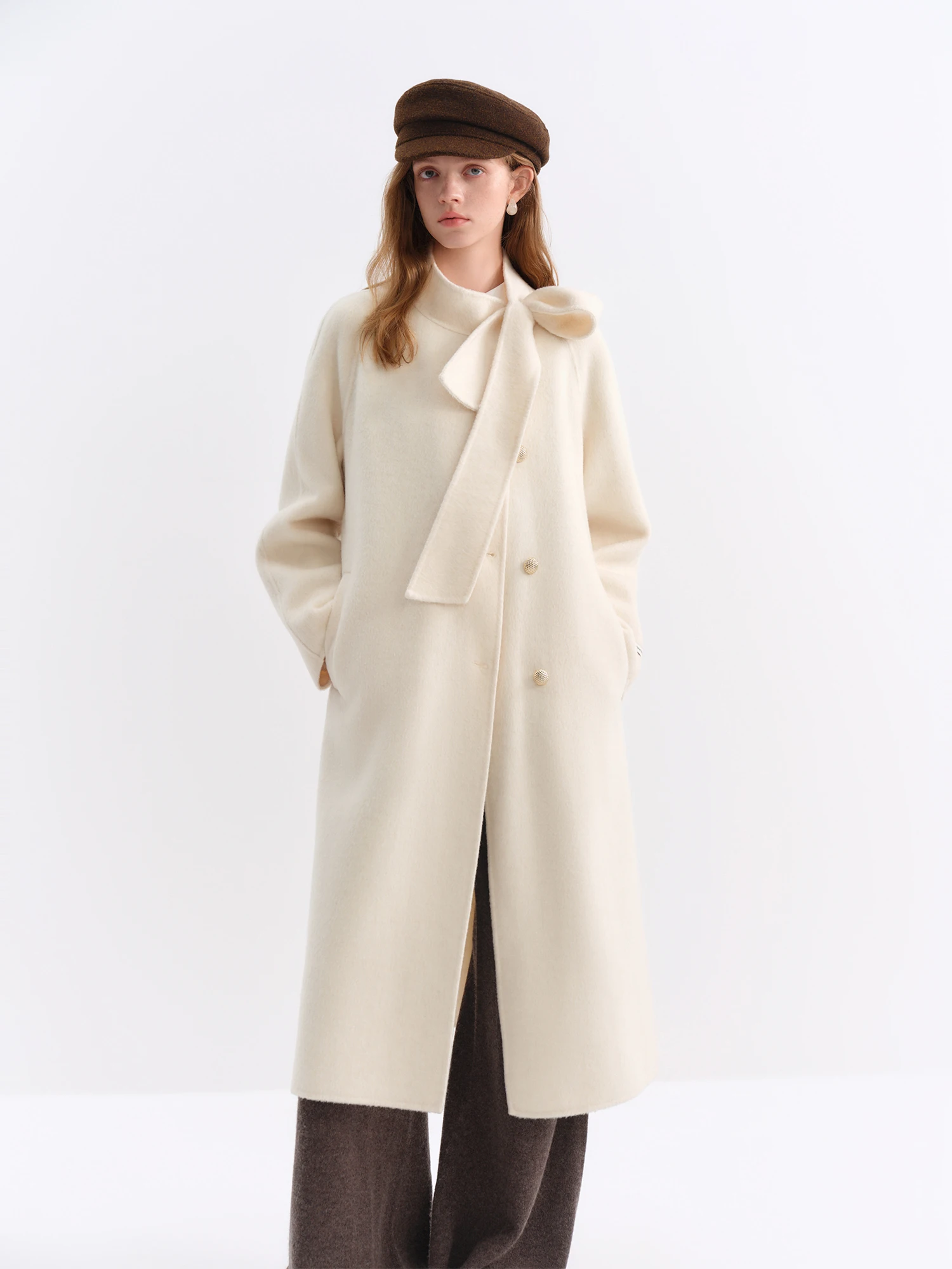 Double-Faced Wool Blend Coat with Tie Detail and Stand Collar