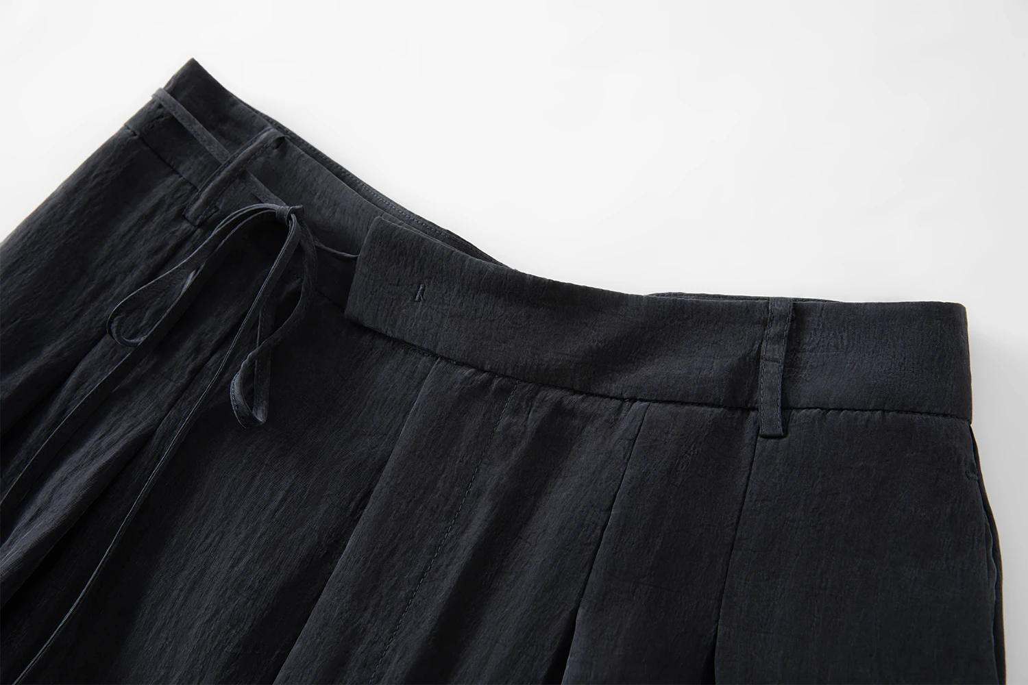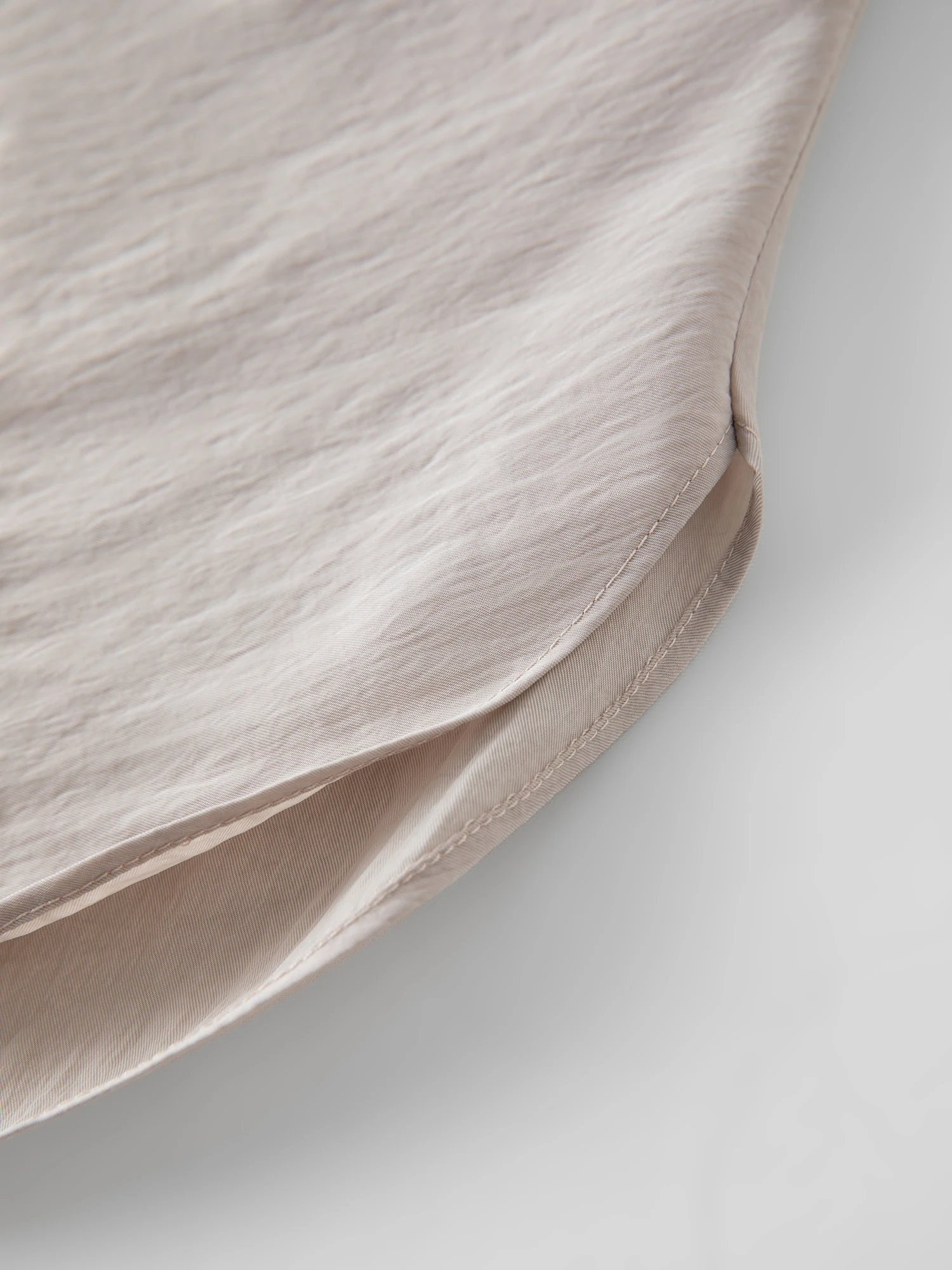 The fabric blend of regenerated cellulose fiber and nylon presents a breathable and smooth texture that drapes effortlessly. This lightweight material supports all-day comfort in spring and summer climates. For longevity, hand washing is advised, and dry cleaning should be avoided to preserve the fabric’s quality.