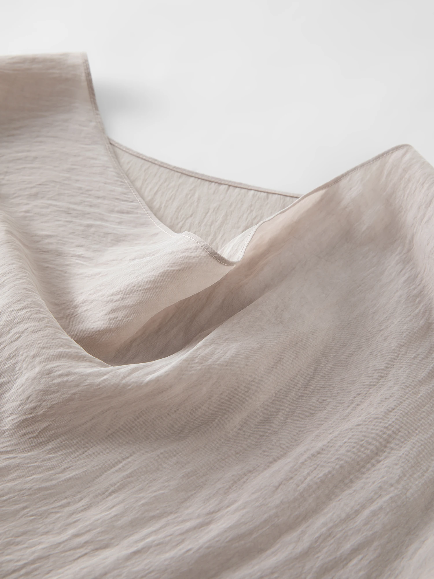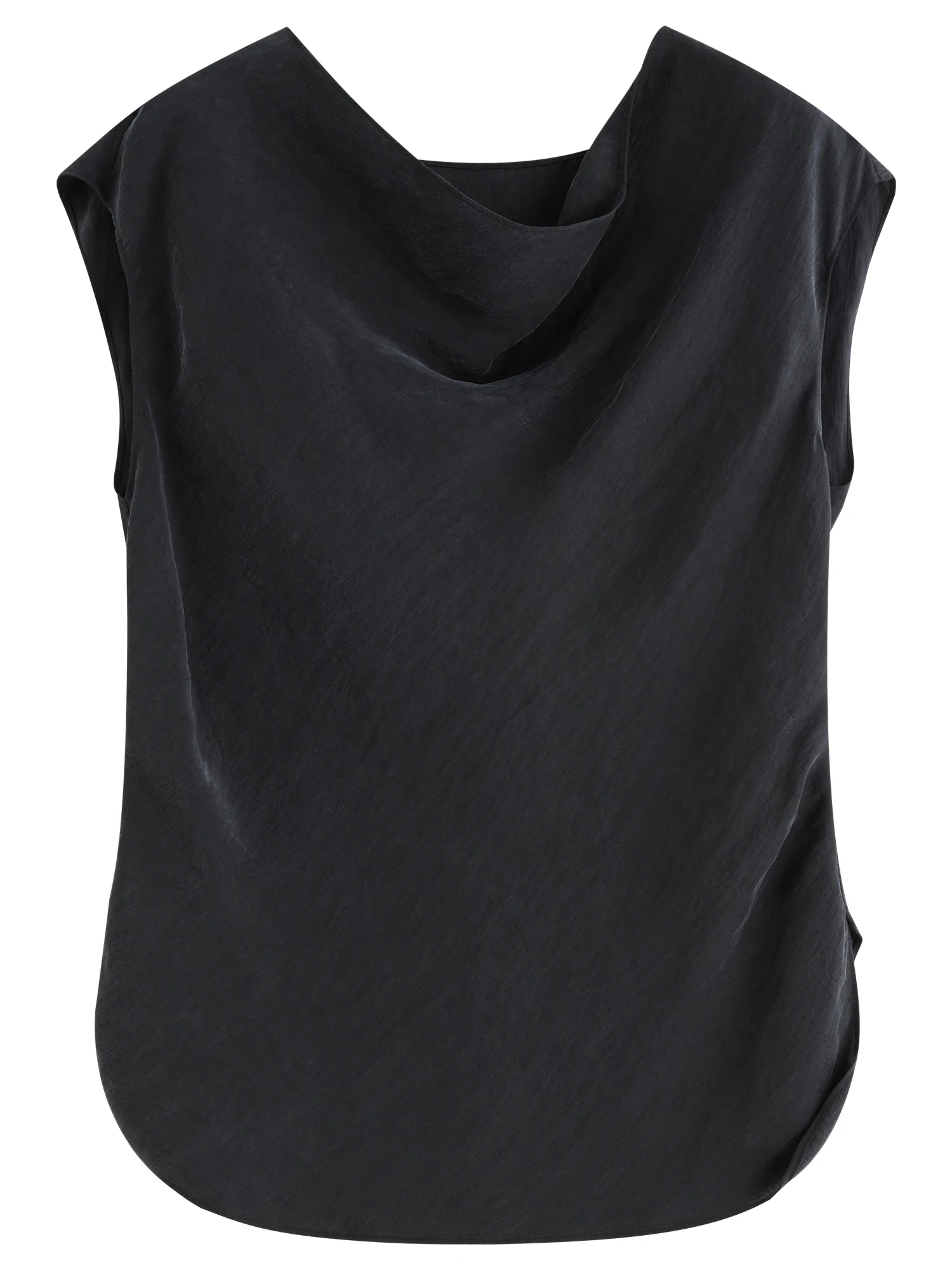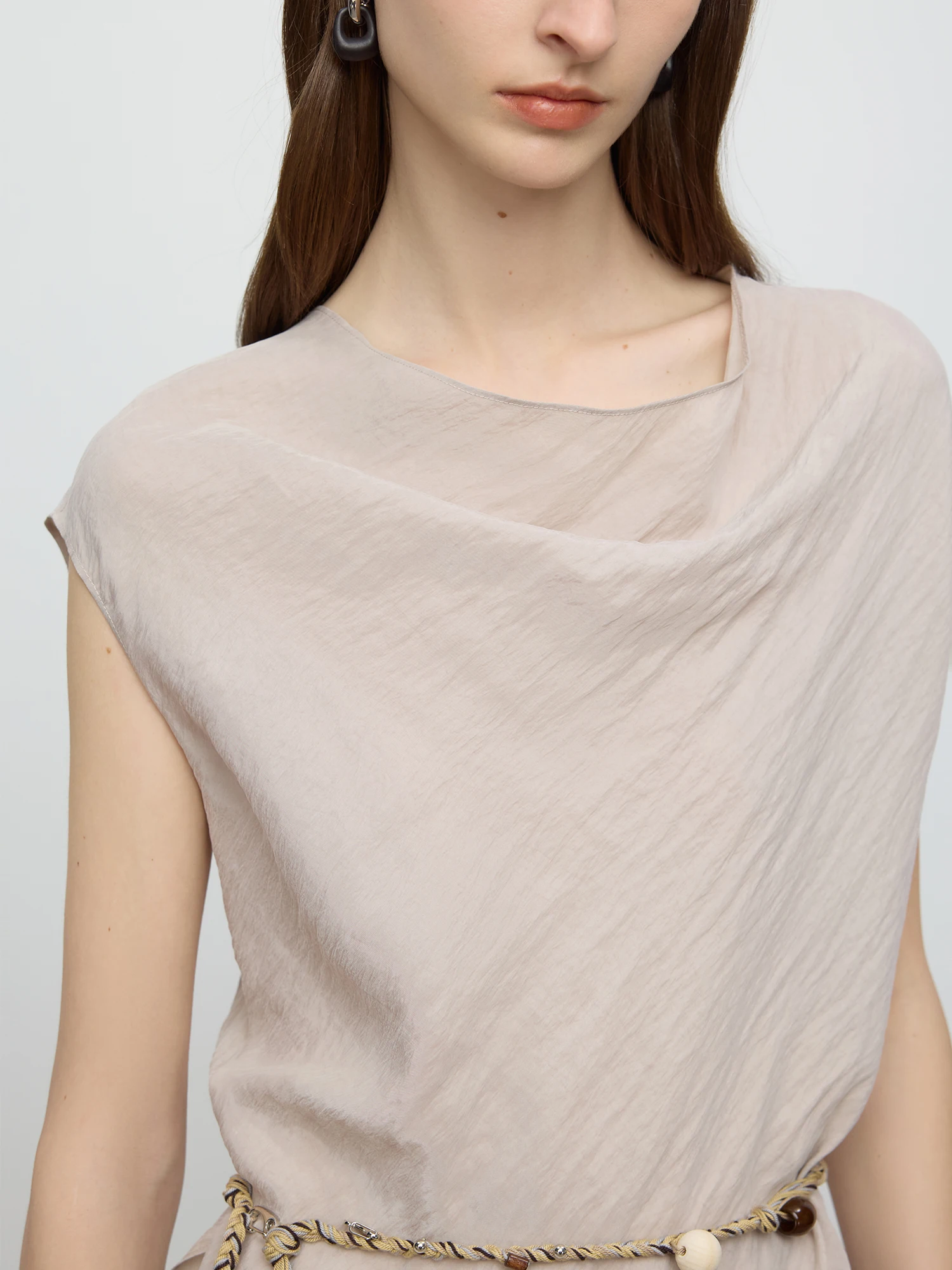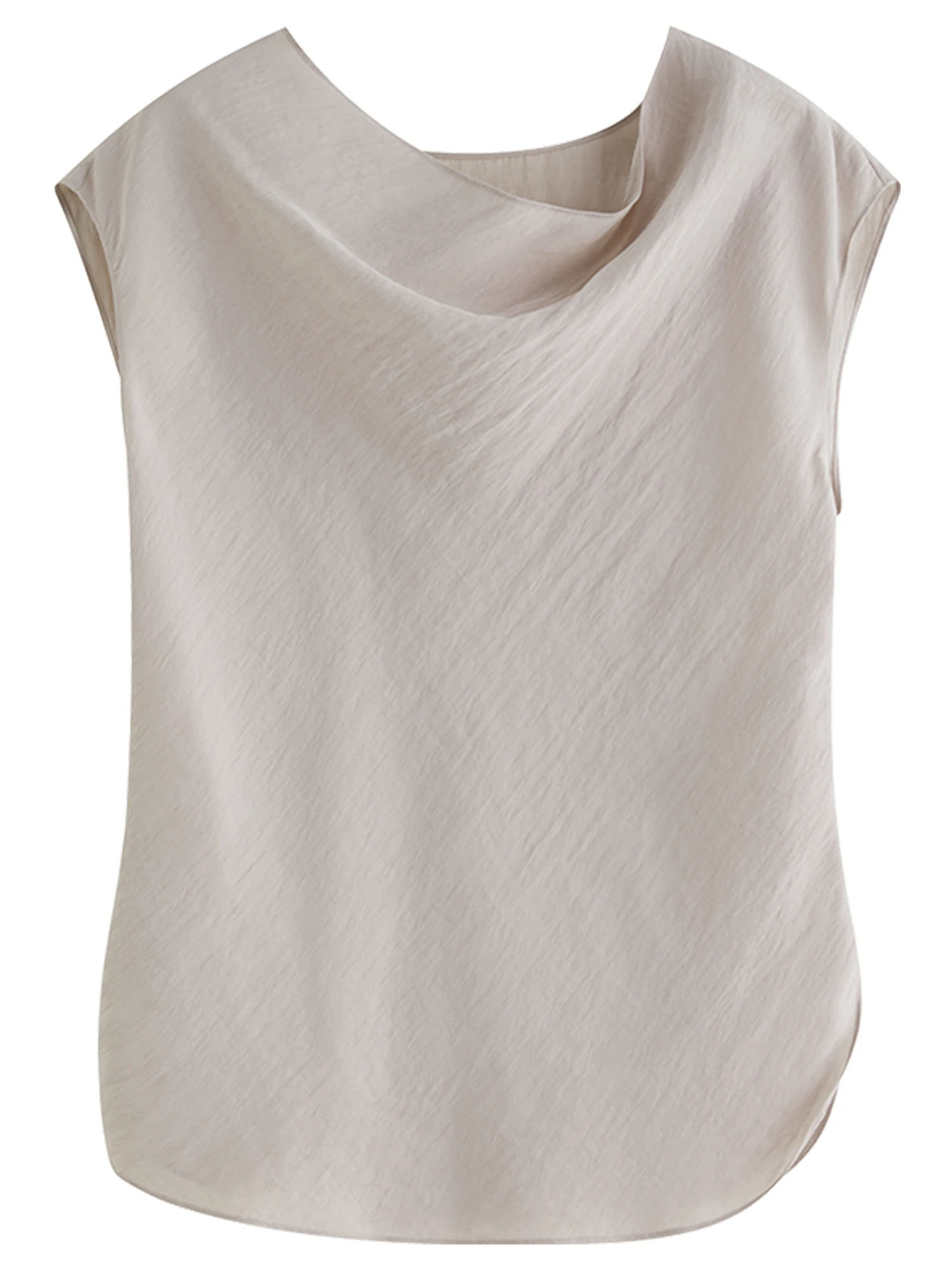 - Design: Features a draped skew collar on the sleeveless shirt that introduces subtle architectural interest, paired with wide-leg pants that enhance ease of movement.