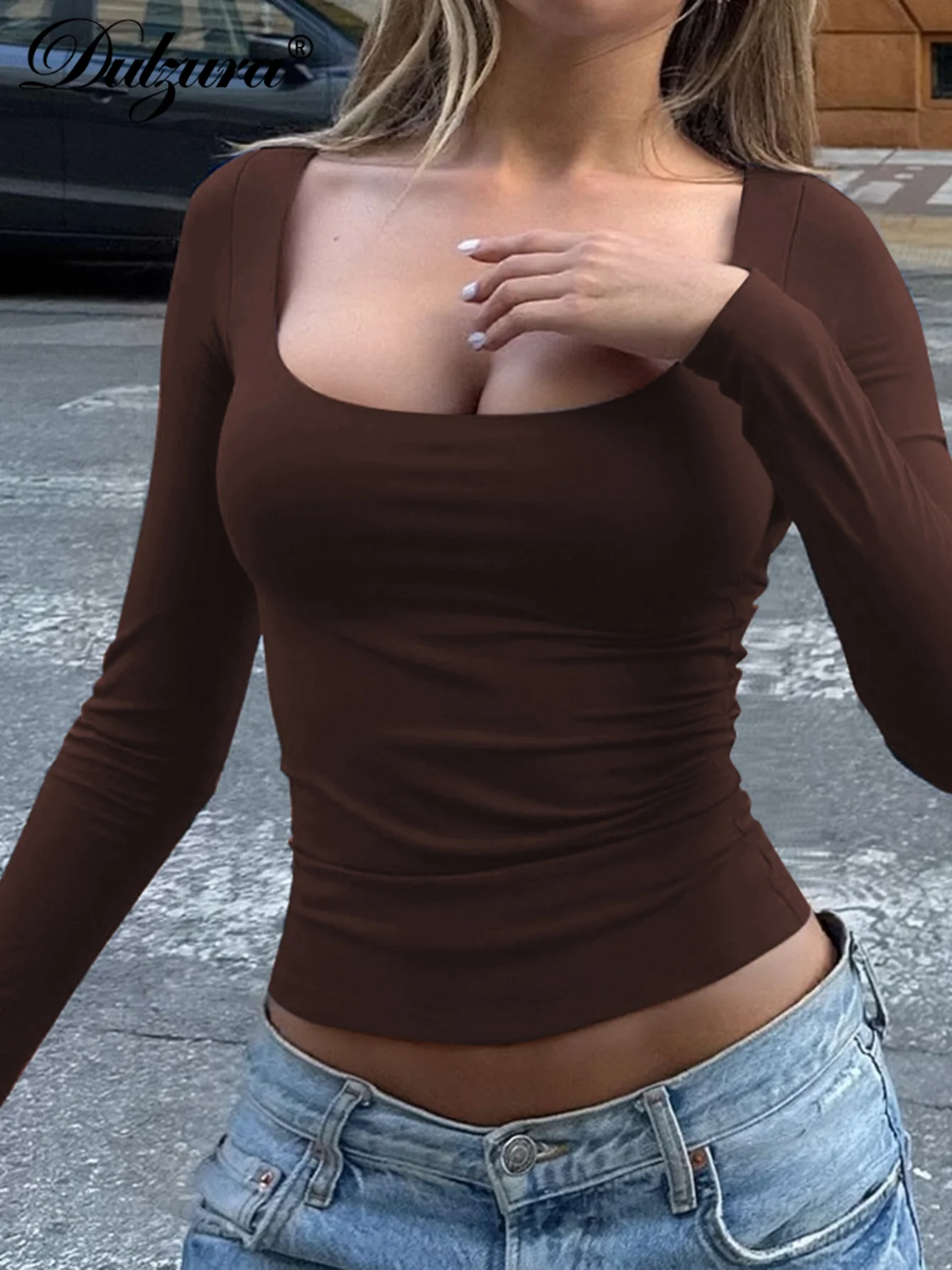 Dulzura Autumn Fashion Square Collar Long Sleeve T-Shirt