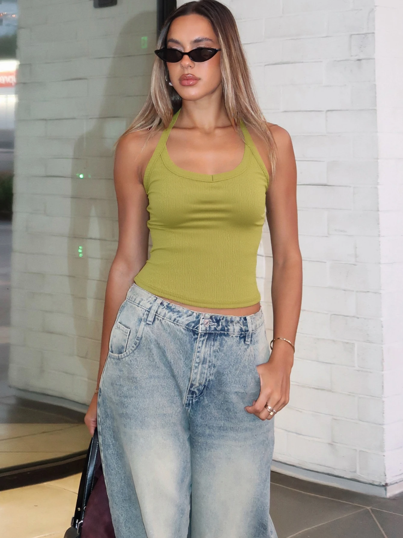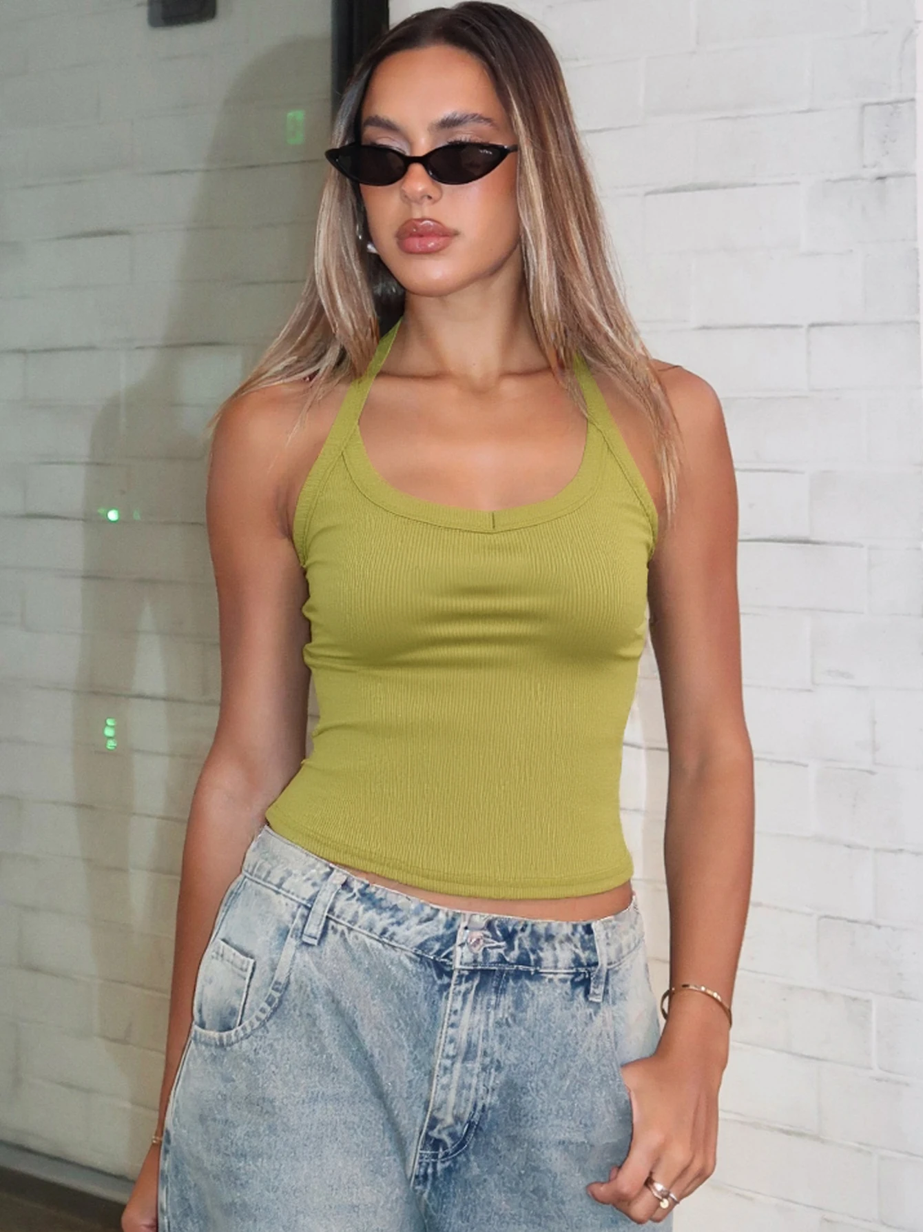 Summer-Ready Backless Halter Crop Top for Effortless Style