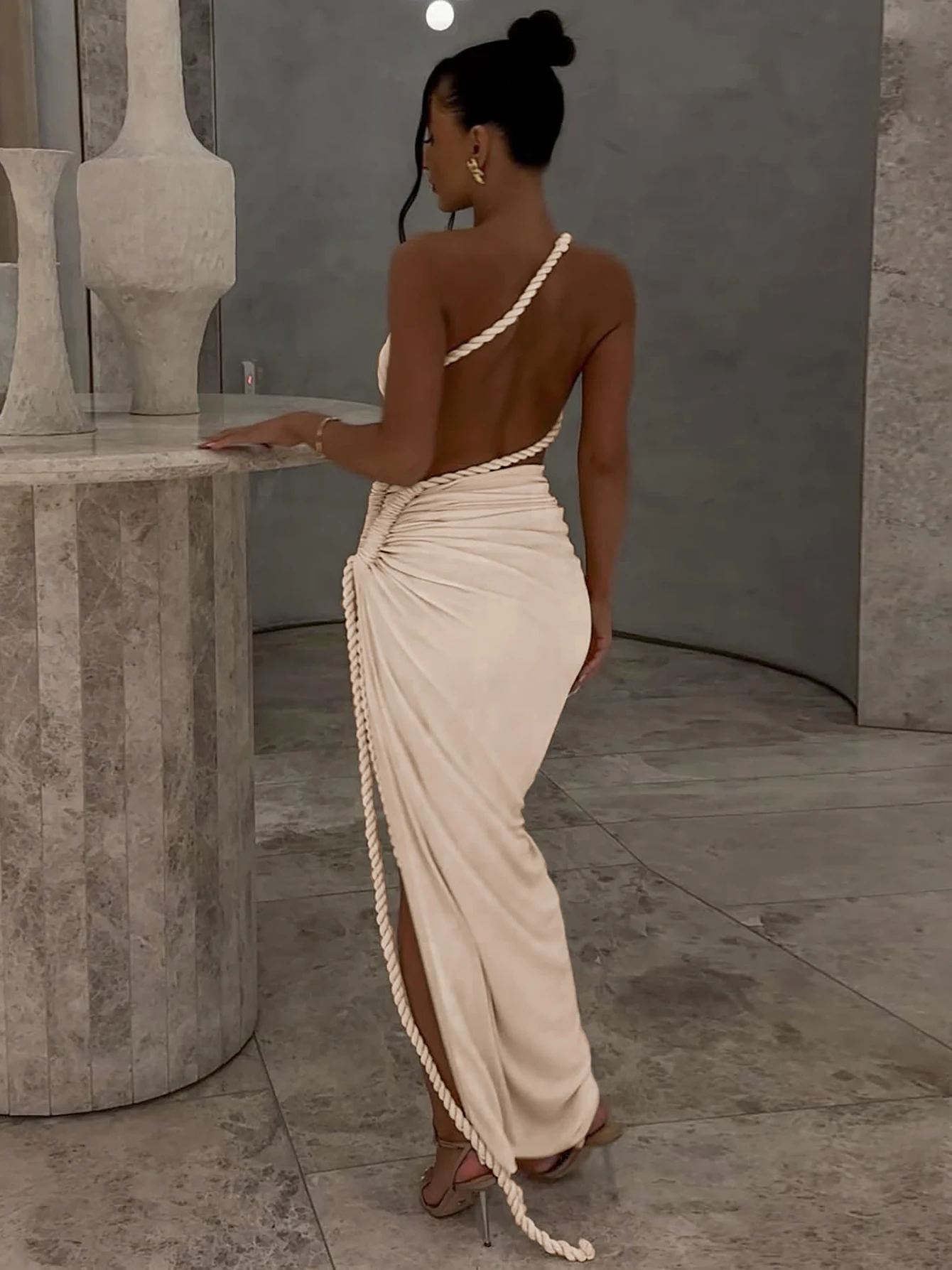 1 review for Sleek One Shoulder Backless Maxi Dress with High Split Appeal