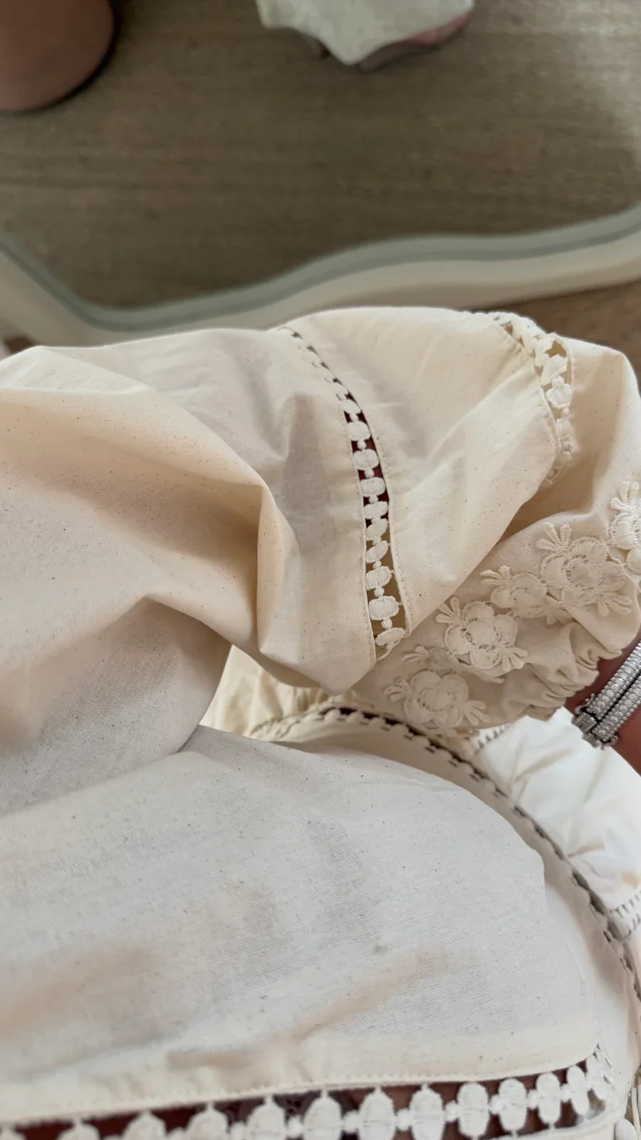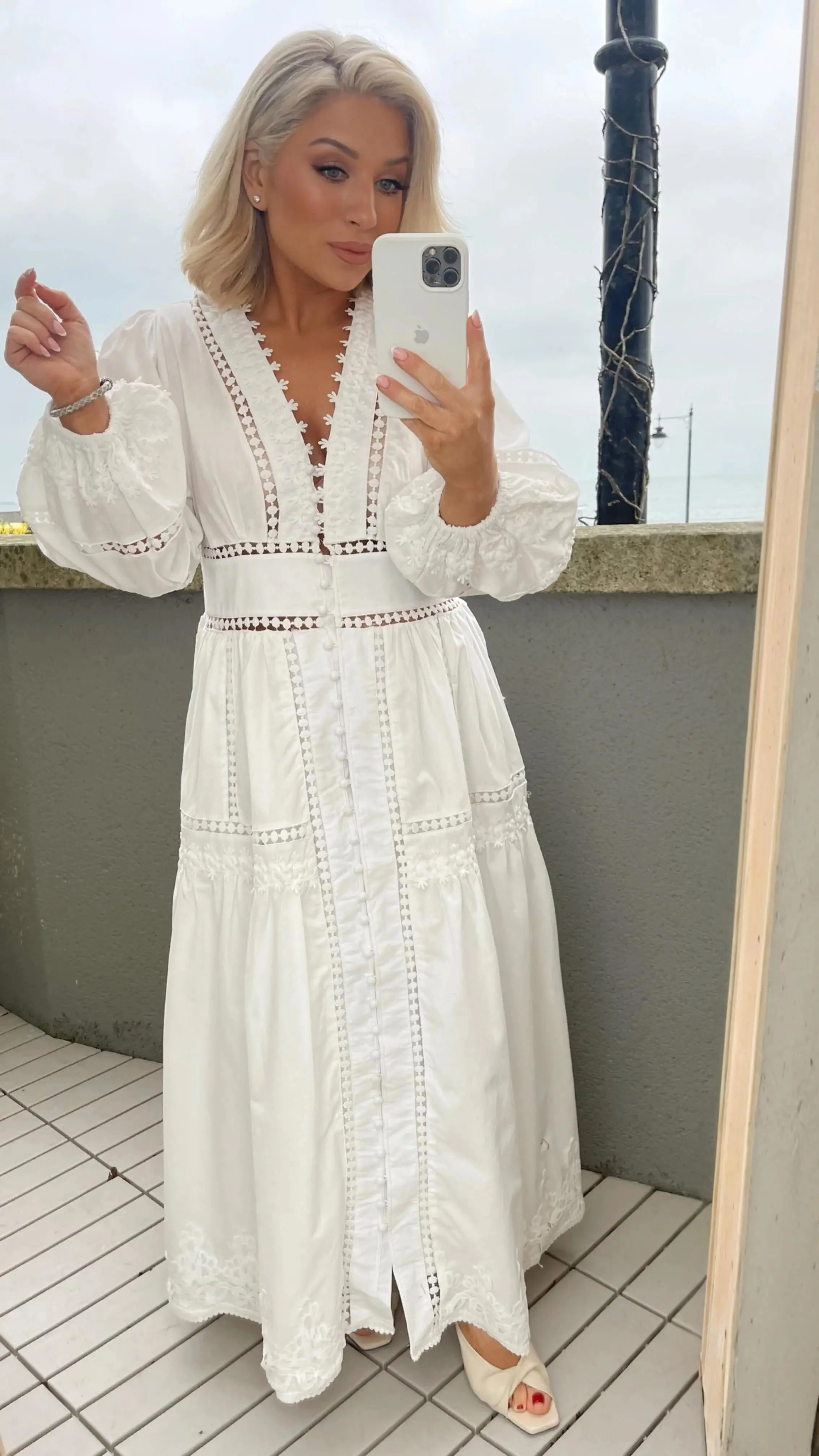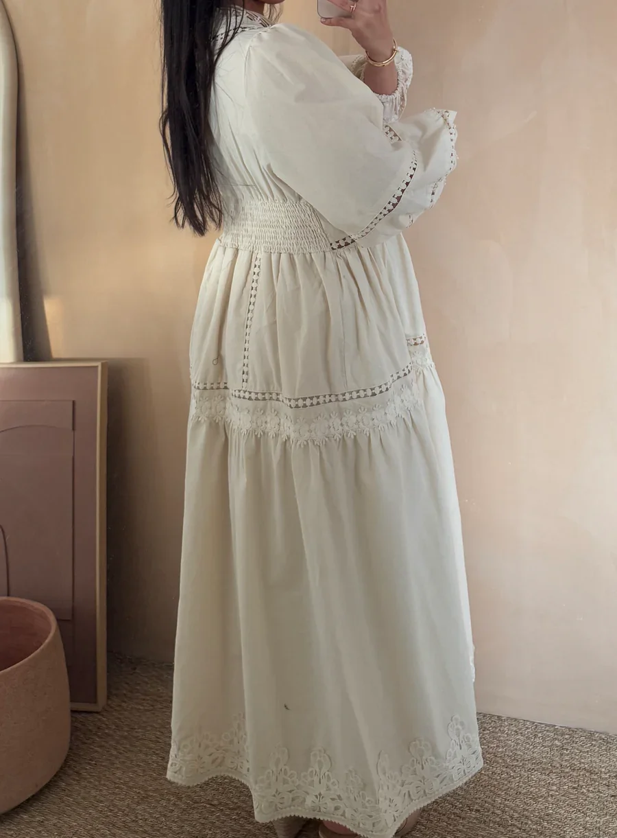 To maintain the beauty and integrity of your dress, we recommend gentle hand washing in cold water and laying flat to dry. This will ensure that the delicate features remain intact and looking fresh season after season.