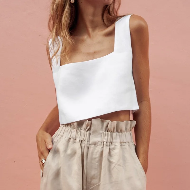 Discover refined simplicity with the Elegant Linen Blend Crop Top, designed to complement your spring and summer wardrobe with understated sophistication. This sleeveless top features a flattering V-neckline and a slim fit that contours gently to the body, enhanced by a slight stretch for ease of movement and comfort. Crafted from a polyester-based blend, it offers a lightweight, breathable feel ideal for warmer days.