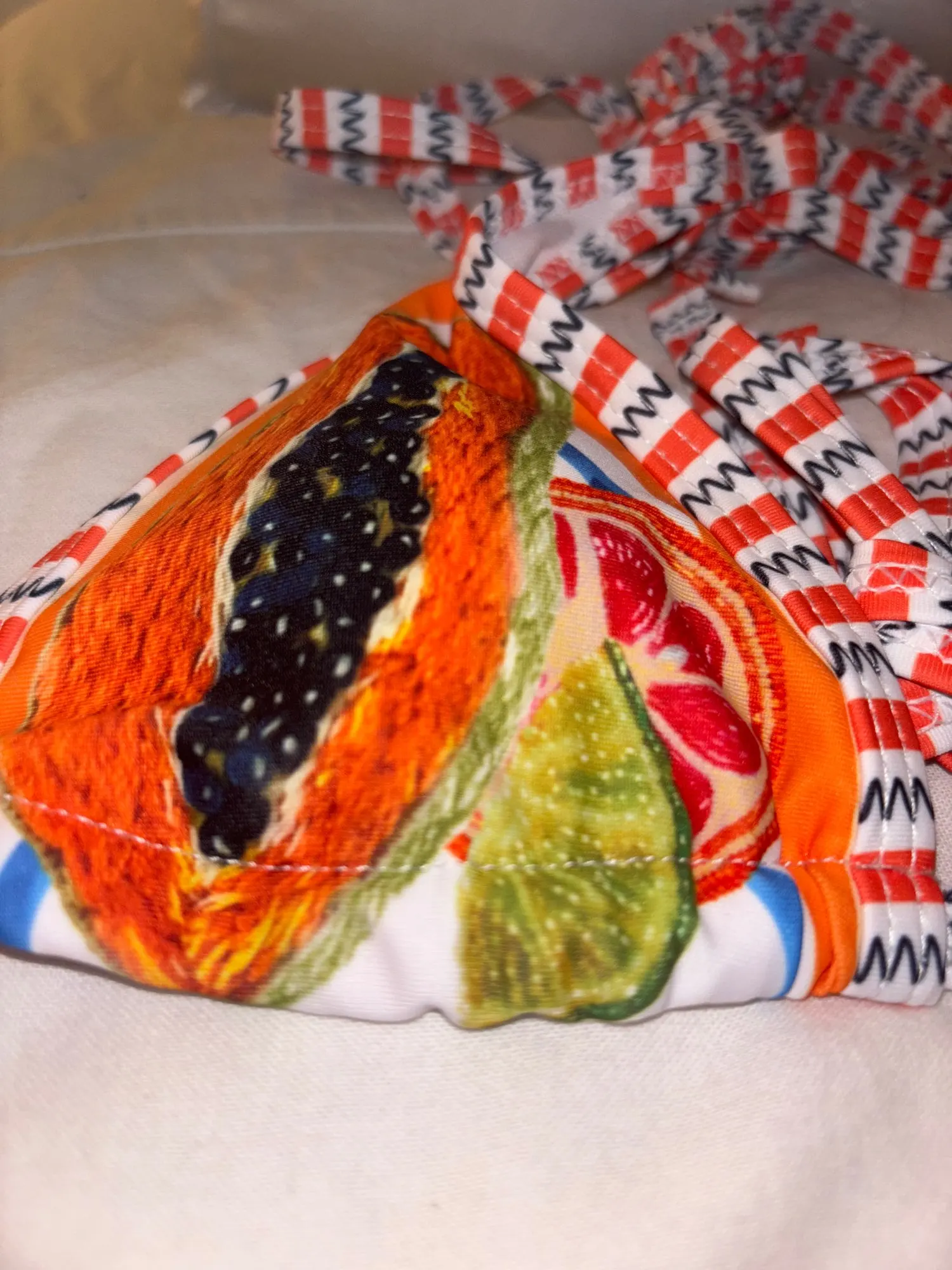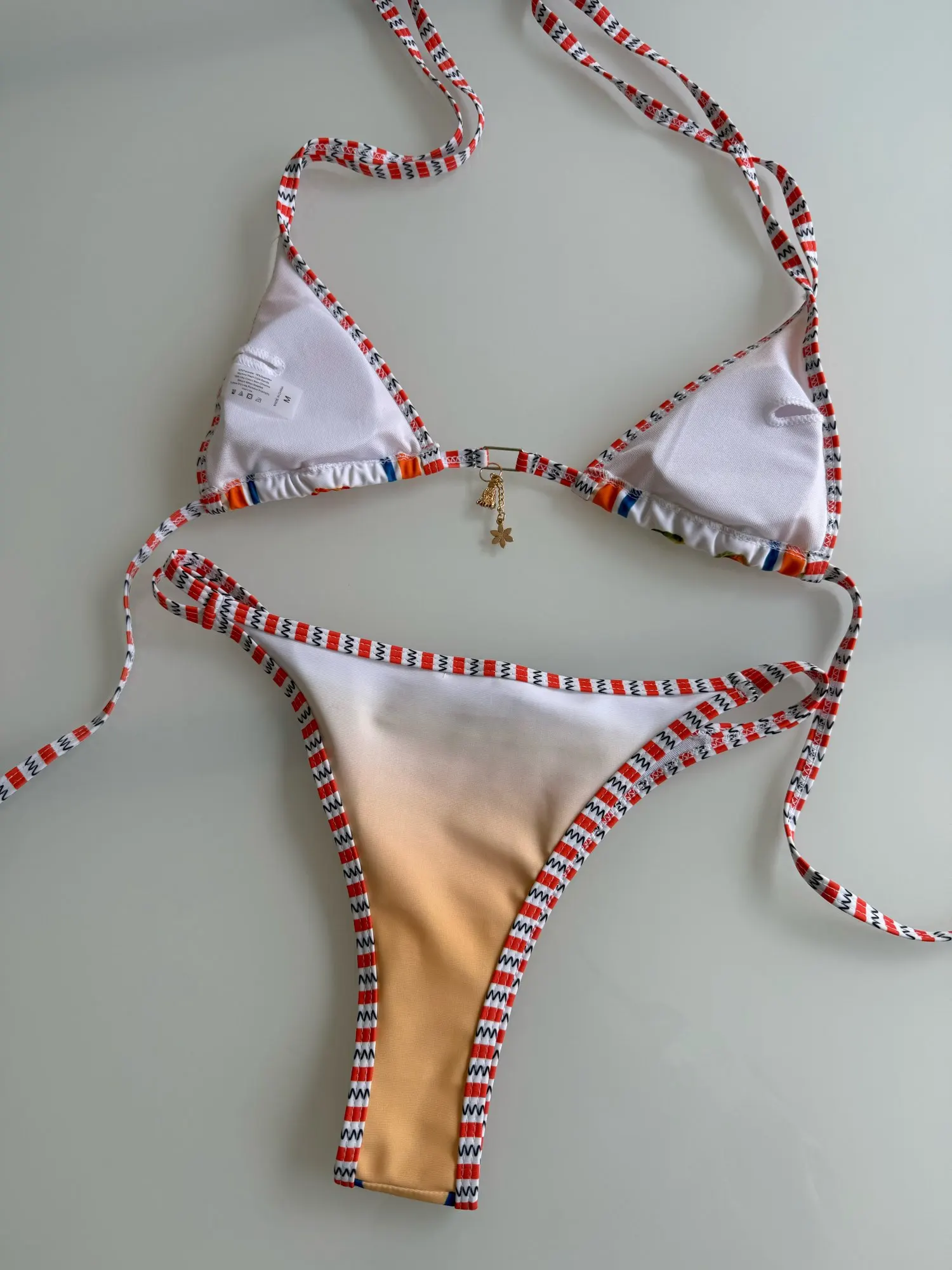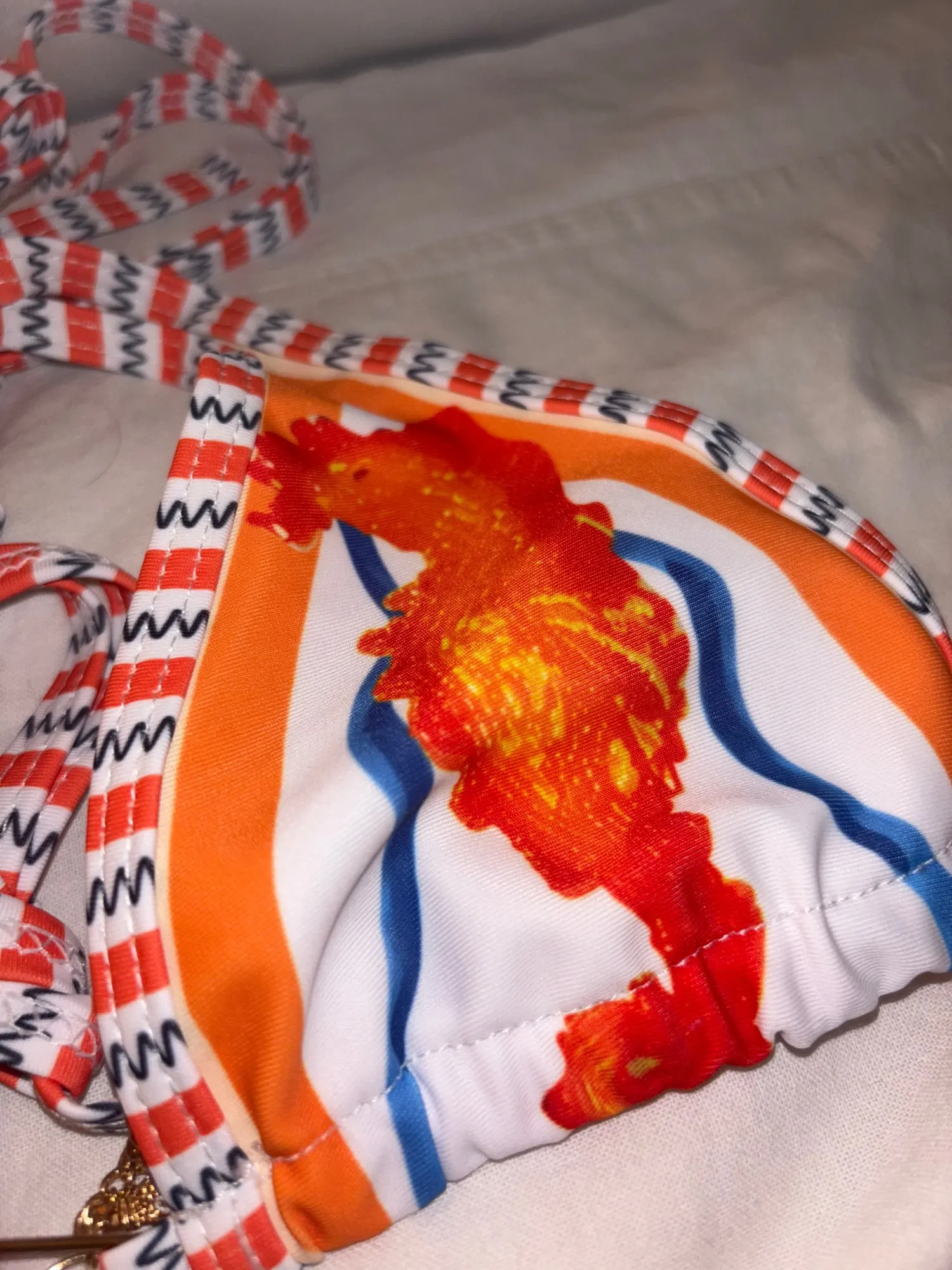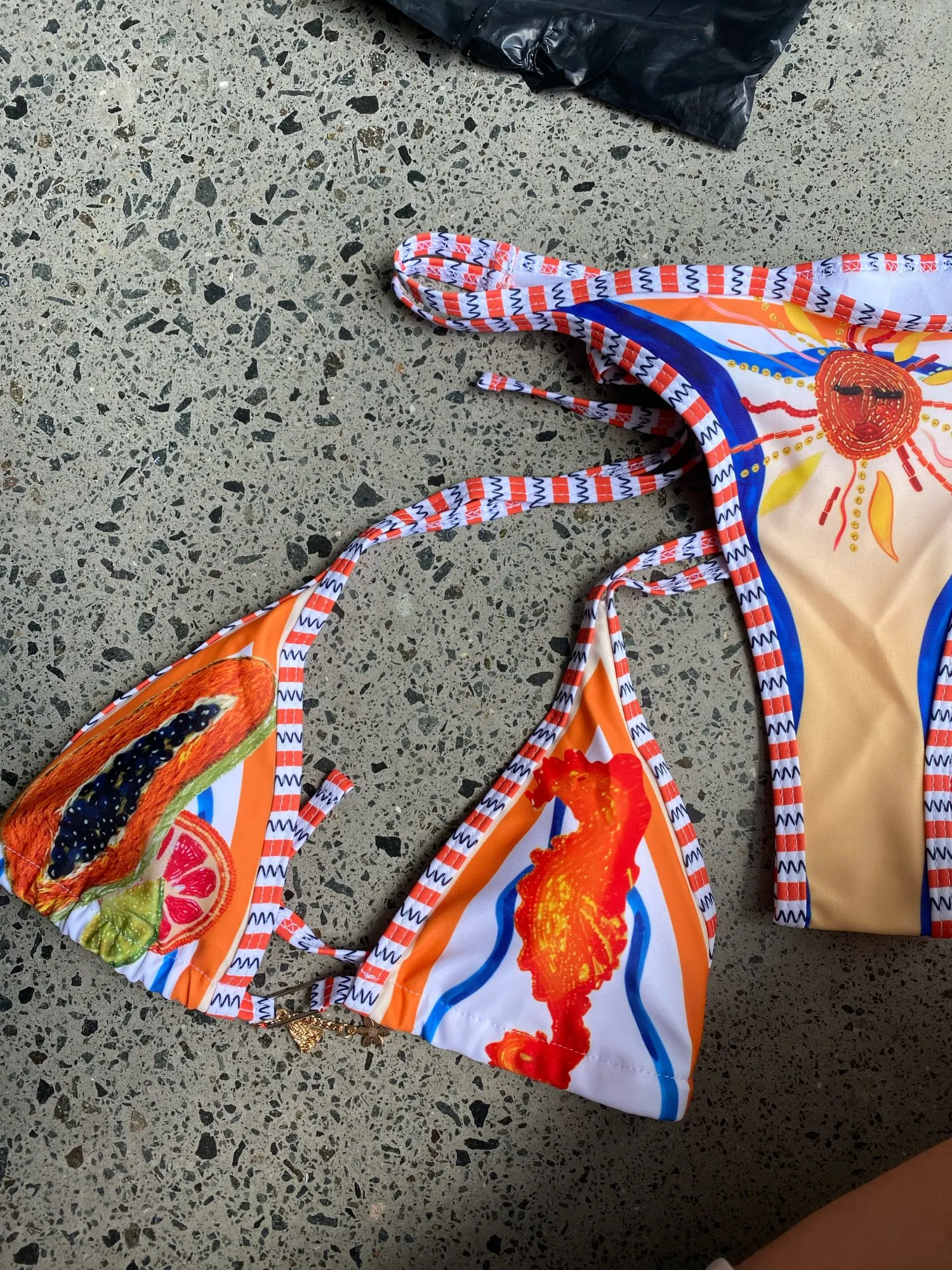 Made from durable polyester with a slight stretch, this bikini set maintains its shape while allowing freedom of movement. For longevity, hand wash in cold water and lay flat to dry, preserving the fabric’s texture and colour vibrancy.