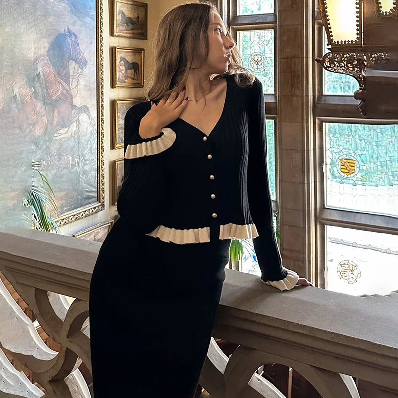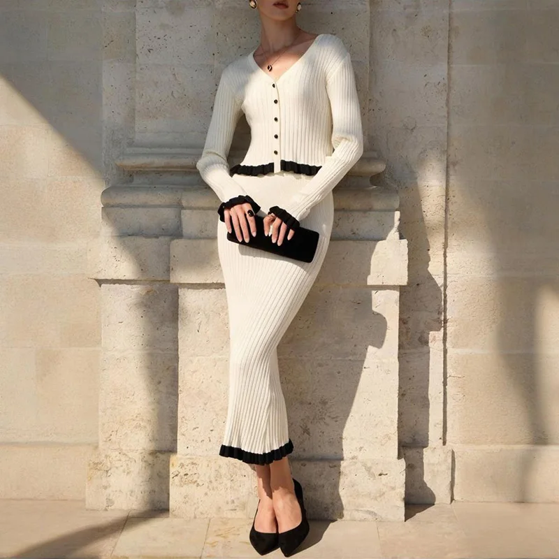 Choose the Elegant Ruffled Knitted Two Piece Set today and elevate your autumn and winter wardrobe with everyday elegance for real life.