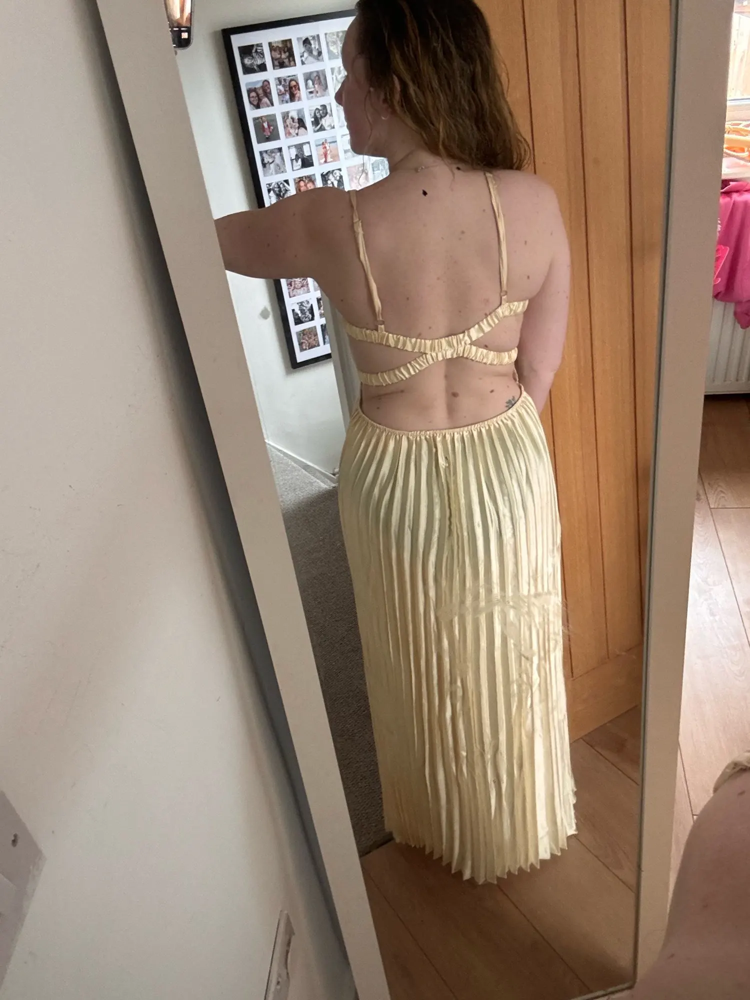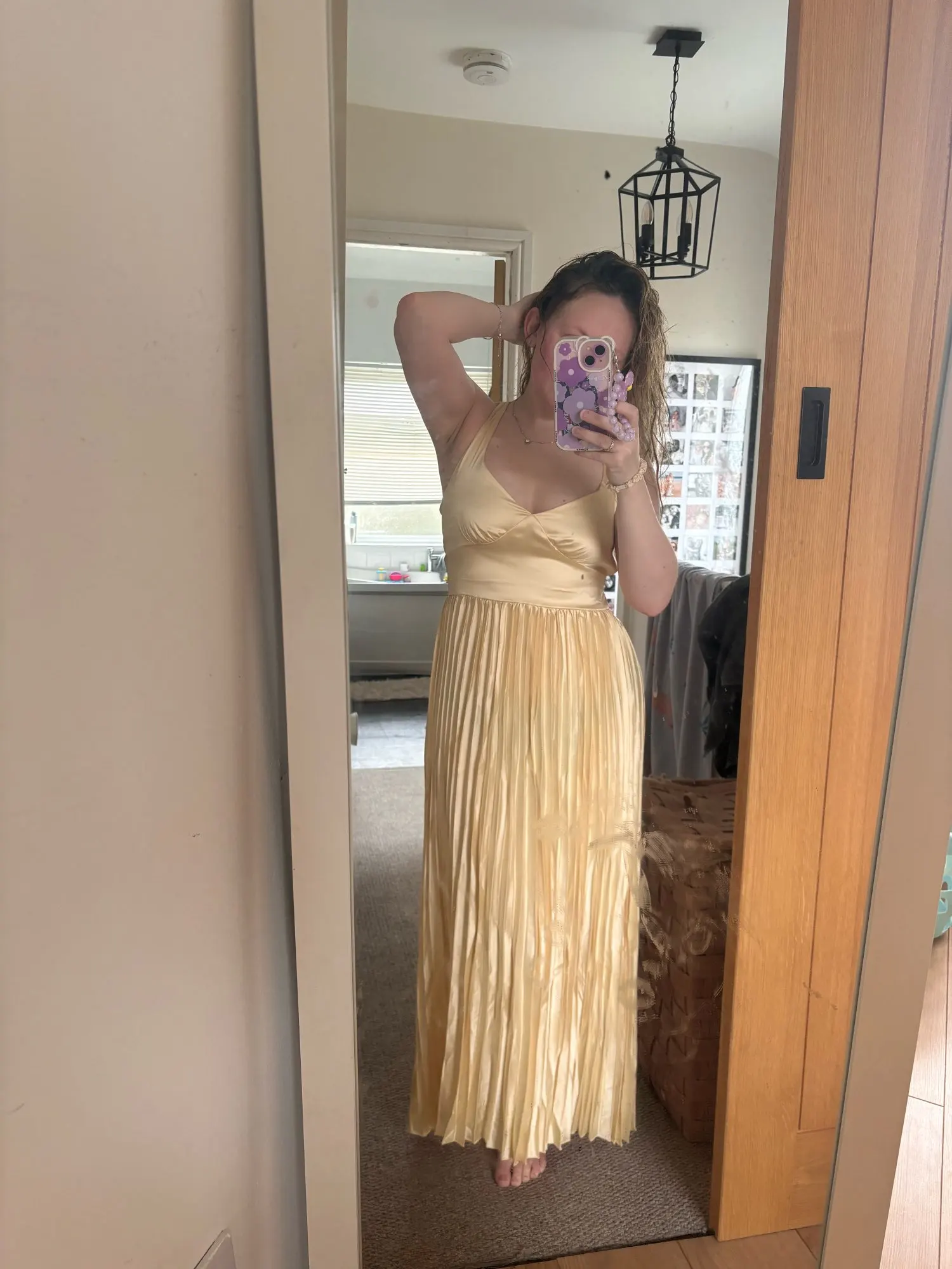 A: Gentle machine wash is recommended, followed by line drying to maintain the dress's colour and shape.Q: Is the dress suitable for formal events?